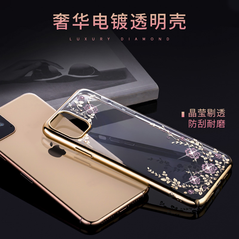 Jindisi Apple 11 mobile phone protective case transparent with drill hard shell ultra-thin women's limited edition luxury high-end iPhone11 protective shell net red creative light and thin Apple 11Pro max all-inclusive defense
