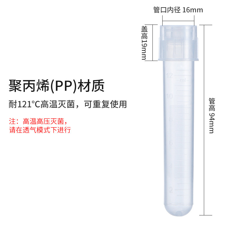 Bikman bioplastics shaker tube 12ml bacterial cell culture tube laboratory with sterile tube two sections style with scale breathable airtight 100 only independent packaging EO sterilization