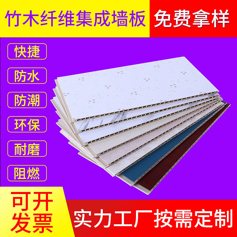 Bamboo fiber integrated wall panel self-installed background wall surface quick mount gusset pvc wall panel fast decoration material ceiling