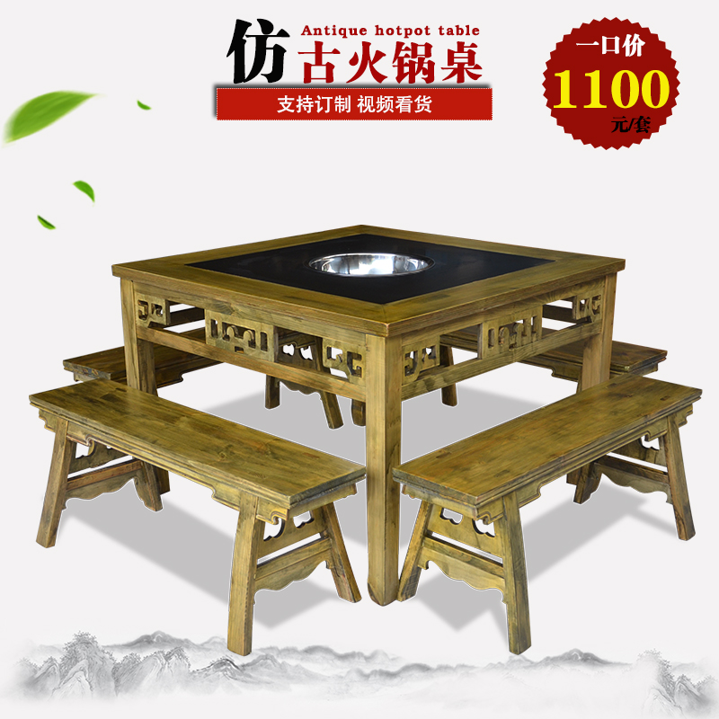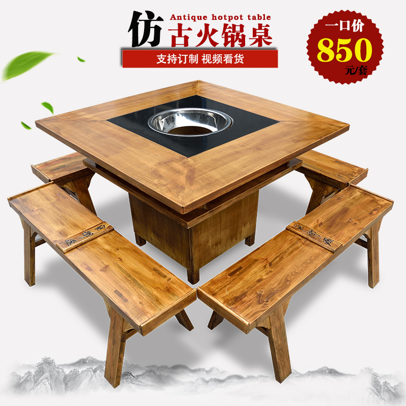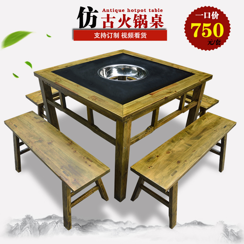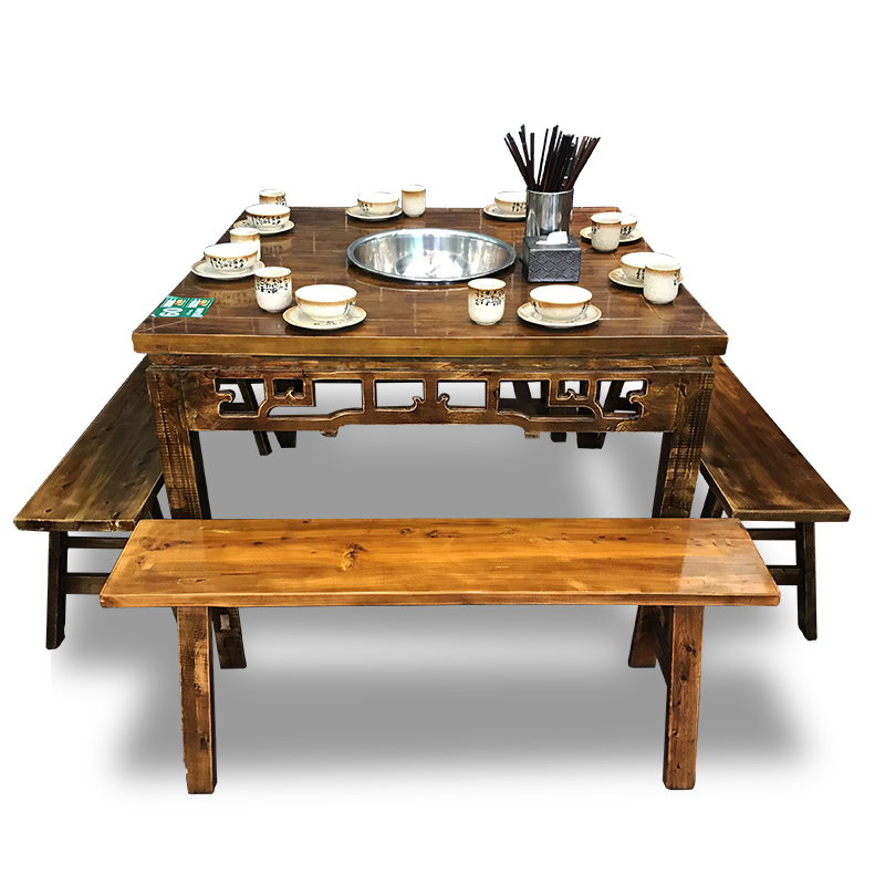String of Sesame Spicy Hot Wood Hot Wood Hot Pot Chairs Combined Dining Room Commercial Gas Stove Induction Cookwood Table