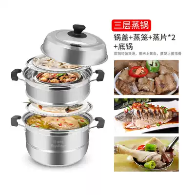 Rongshida stainless steel steamer household multifunctional small 2 23 three layer steamed buns steamer gas induction cooker Universal