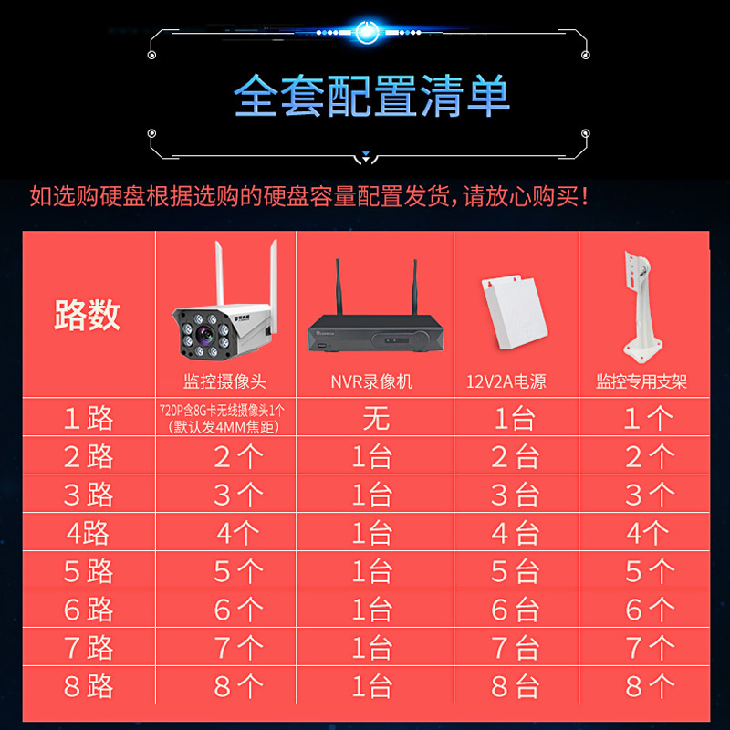 Wireless monitoring kit HD night vision Home camera Outdoor supermarket monitor Full set of equipment Mobile phone remote