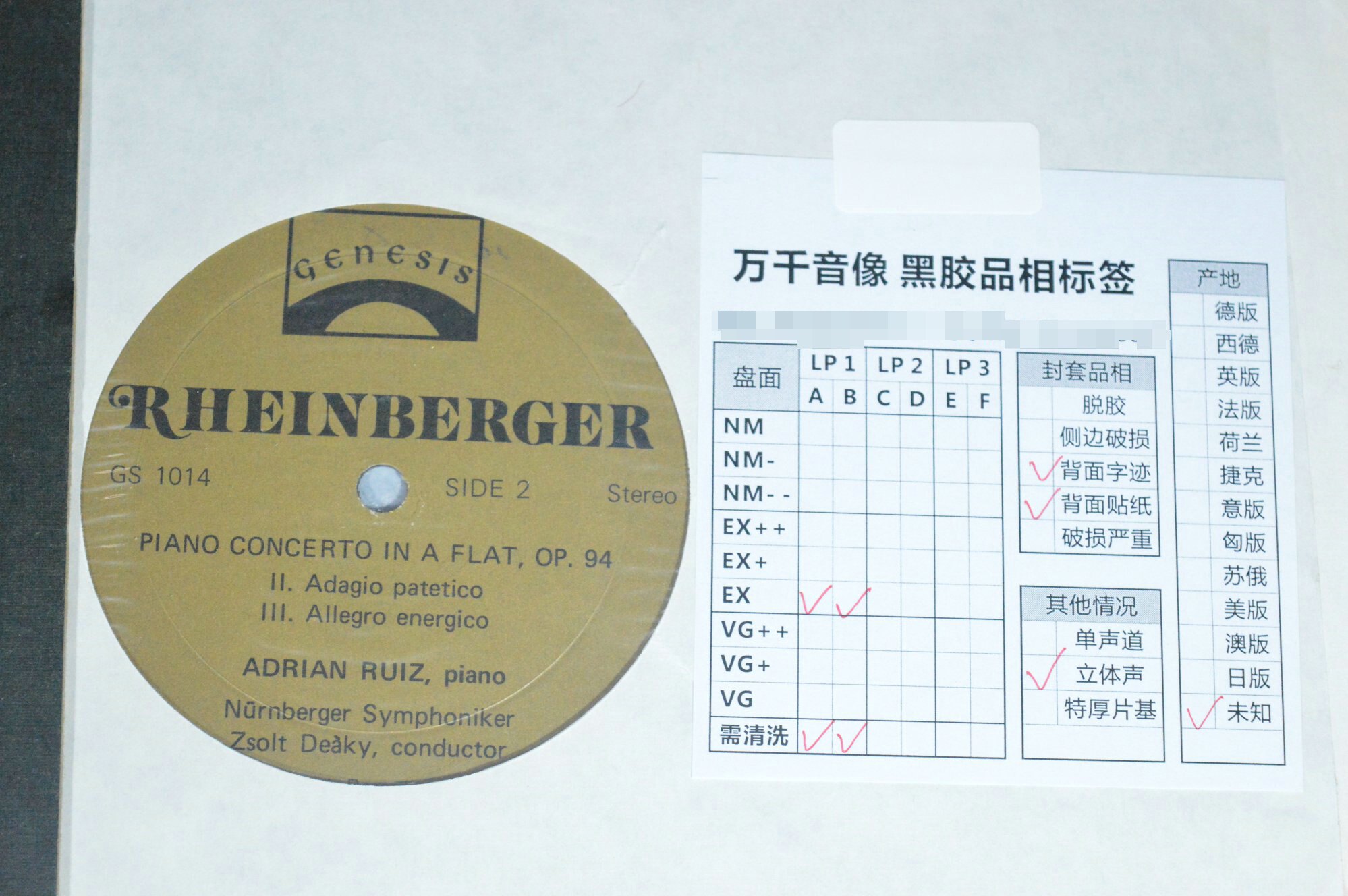 Rheinberger Piano Concerto Adrian Ruiz Vinyl LP