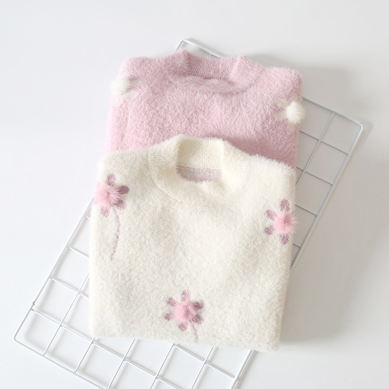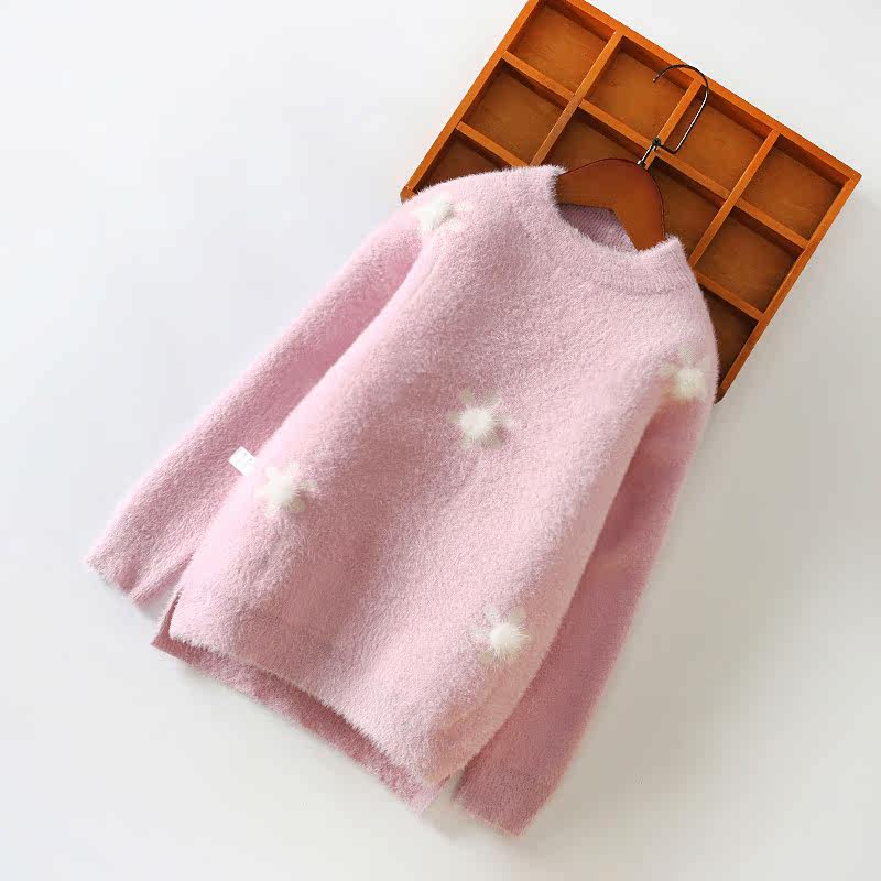3-5 year old female baby warm blouses girl sweaters water mink suede knit undershirt 2021 new autumn and winter