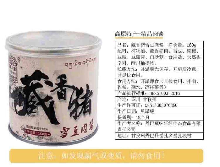 Tibetan village people Tibetan pig snow bean sauce 160g*3 meals Bibimbap noodles Sichuan Ganzi Plateau specialty