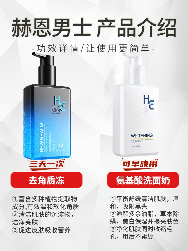 Hearne Men's Exfoliating Whitening Oil Control Cleanser Moisturizing Cleanser Acne and Blackhead Removal Set