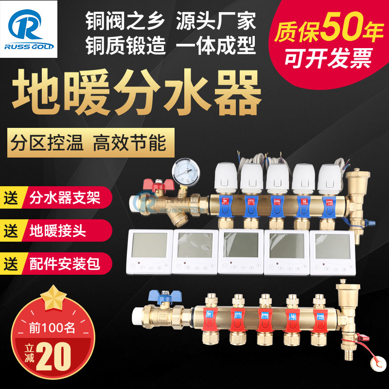 Floor heating pure copper intelligent water separator LCD controller water collector chamber constant temperature automatic adjustment electric actuator