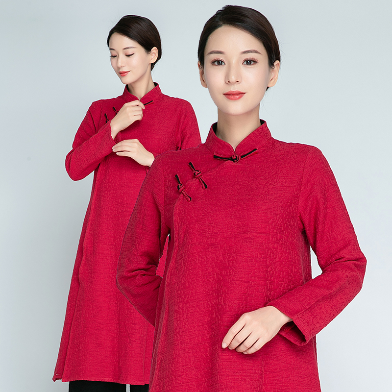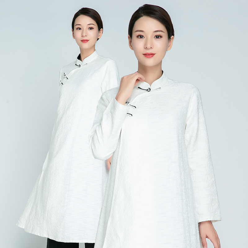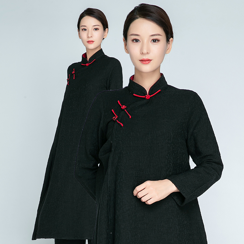 Wunon Spring Autumn New Tai Chi Dress Lady China Wind Tang Dress Hanfu Ancient Dress Disc Buckle Jacquard Cotton Numb Qipao