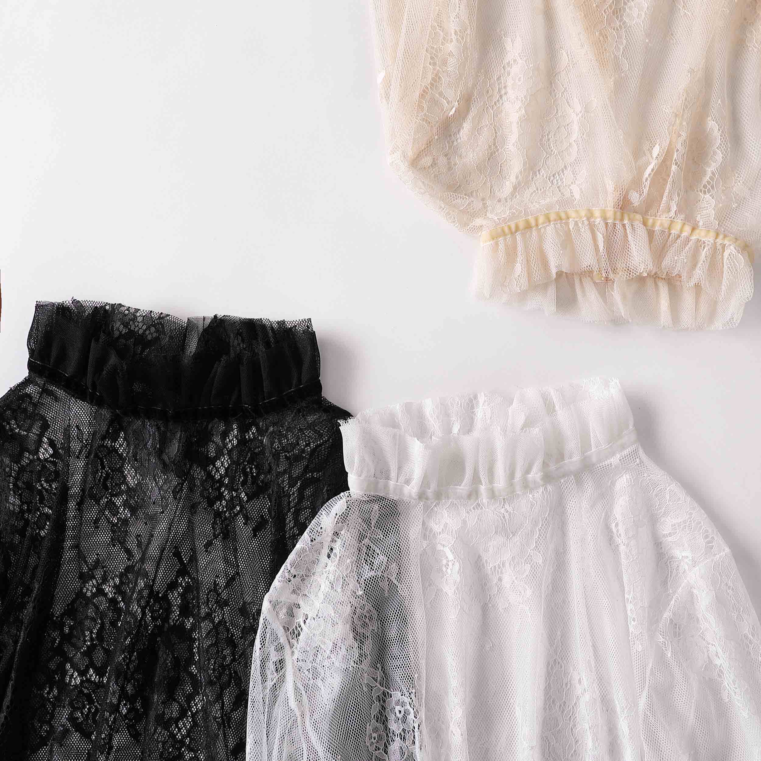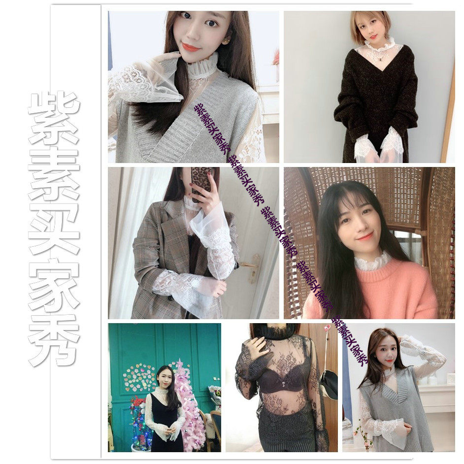 Purple lace bottoming shirt female trumpet sleeve mesh hollow long sleeve stand collar spring and autumn princess super fairy top