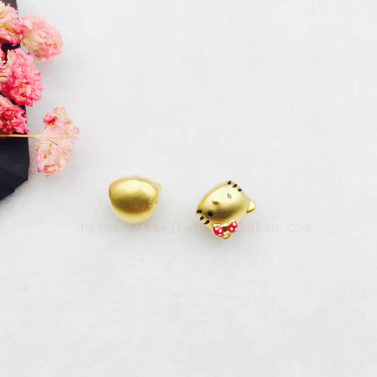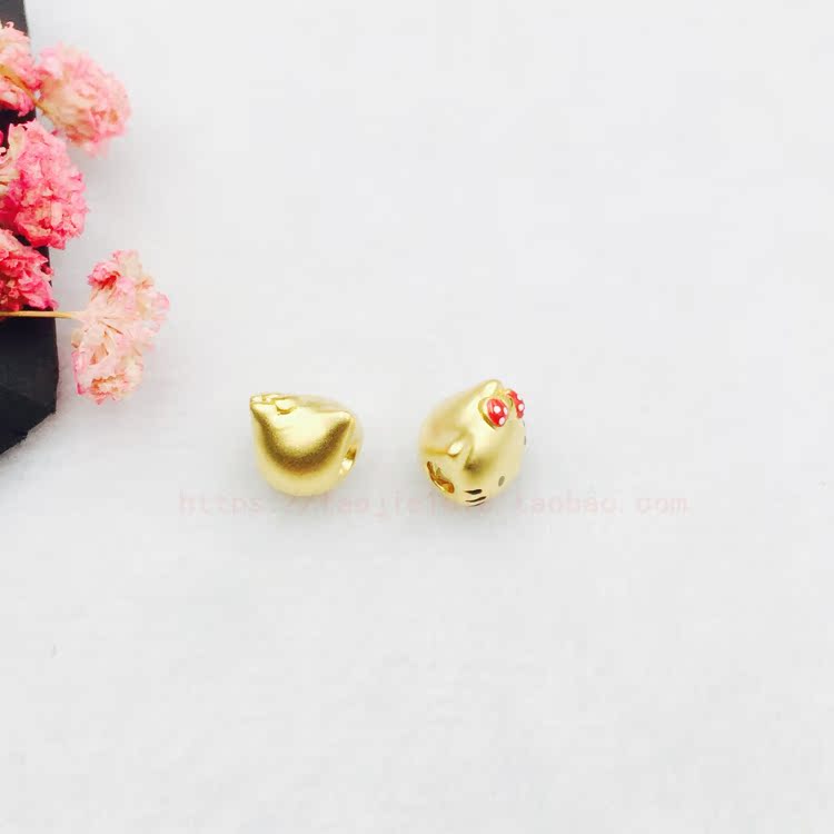 3D hard gold 999 pure gold Mini KT cat transfer bead bracelet Classic small KT cat Passepartout baby bracelet