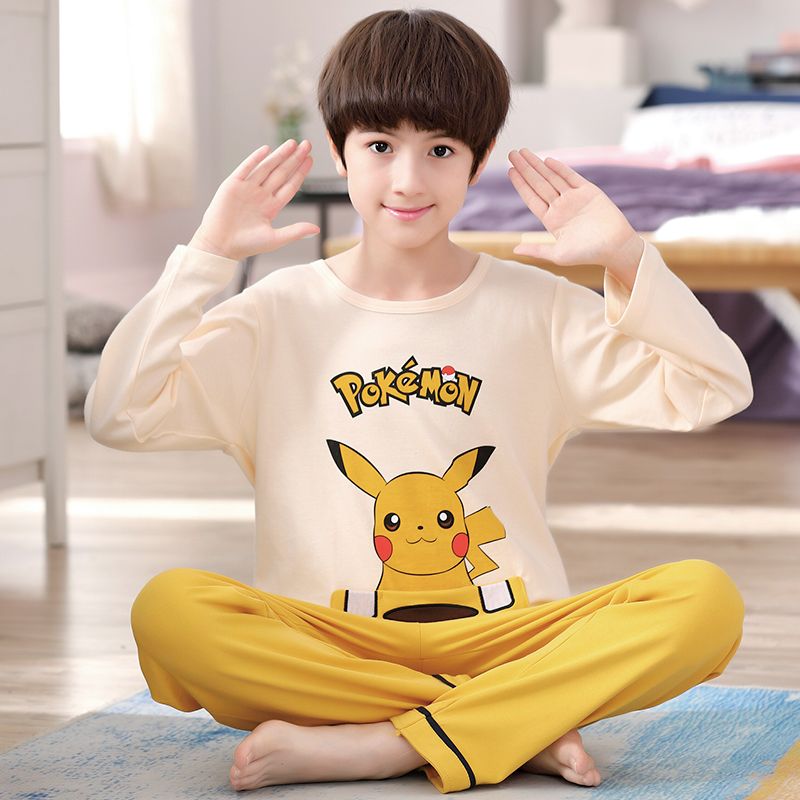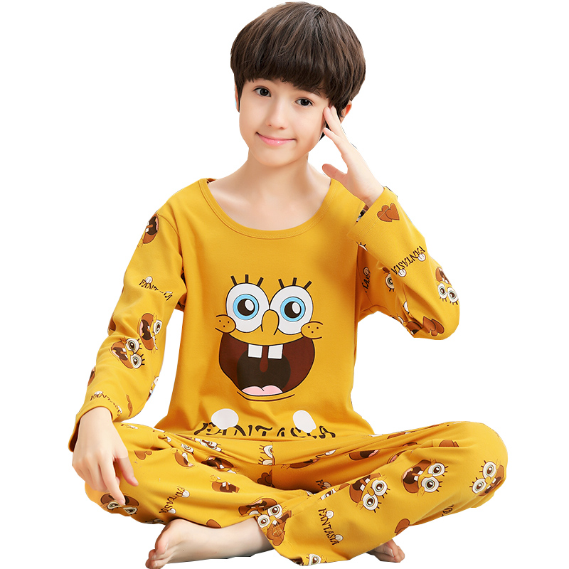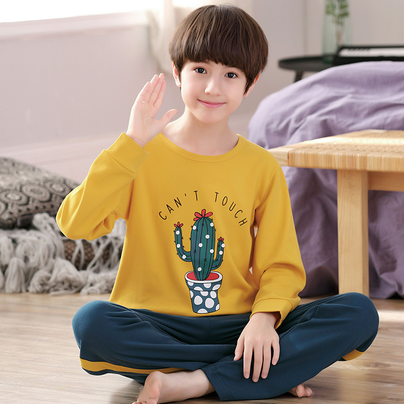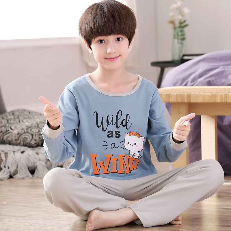 Great Boy Sleepwear Male Spring Autumn Summer Long Sleeve Thin section Pure cotton Junior junior high school student 12-15 -18 - year-old home clothes