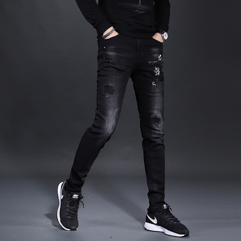 2022 New spring jeans Male Tide Cards Breaking Holes Black Casual Workout small footed men pants Spring and autumn