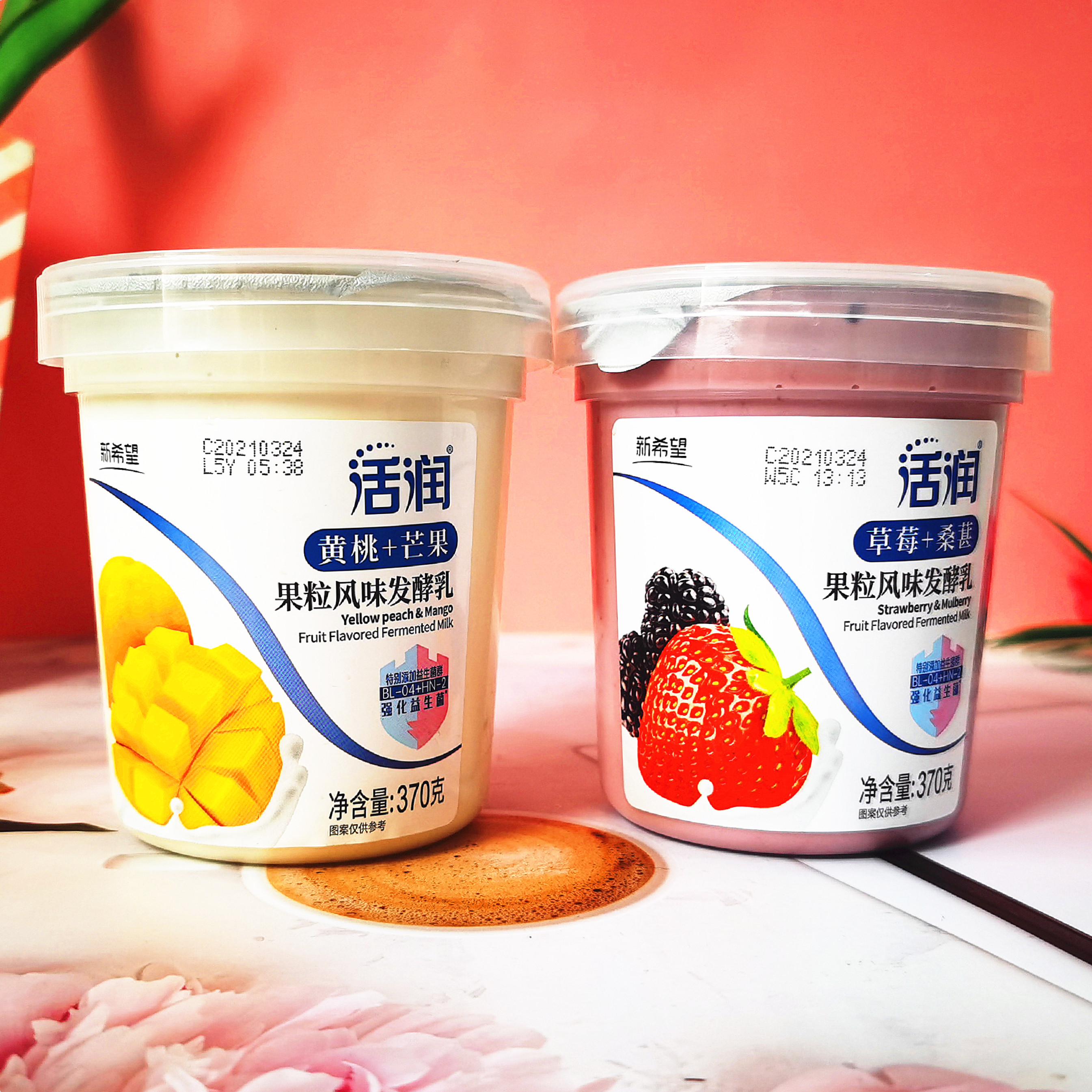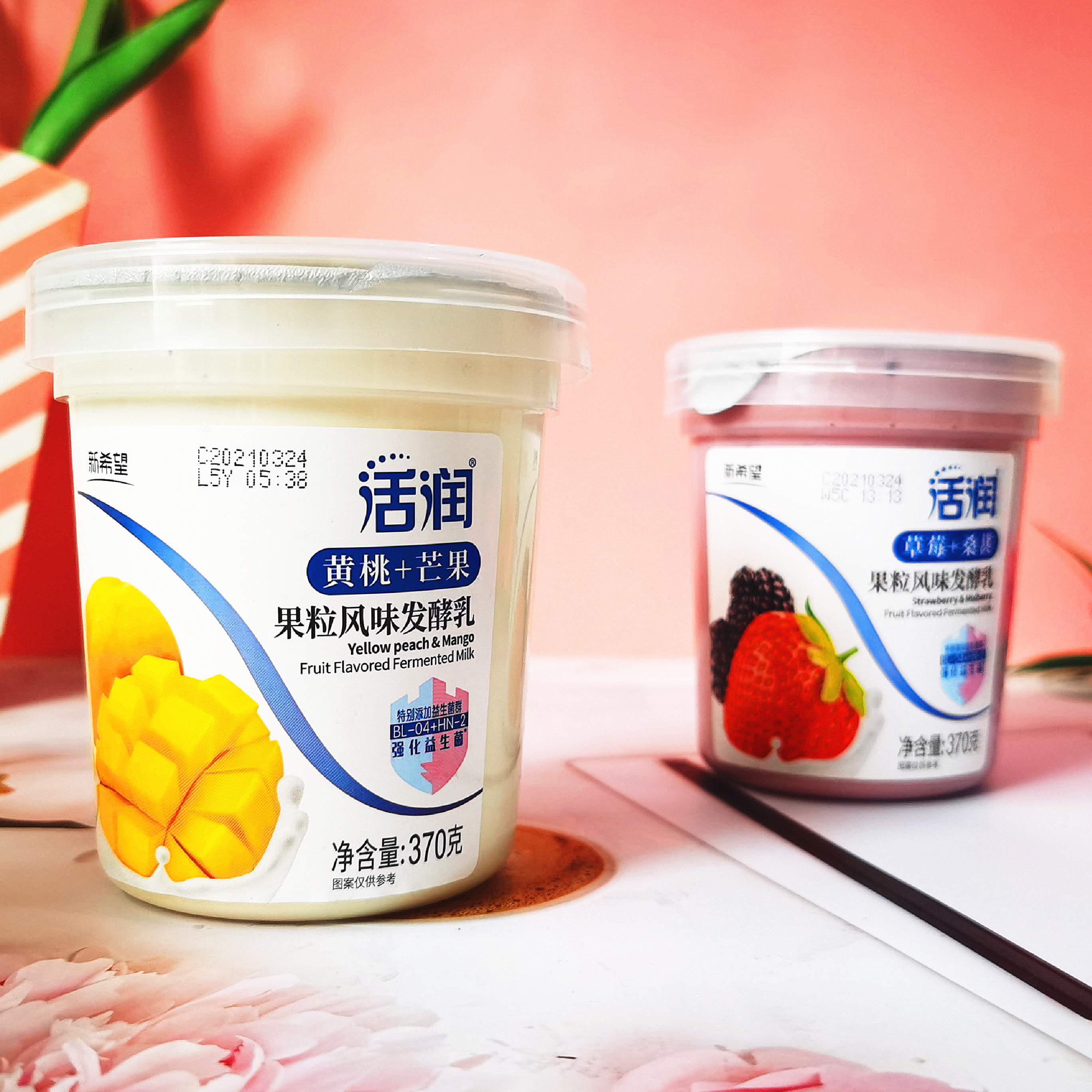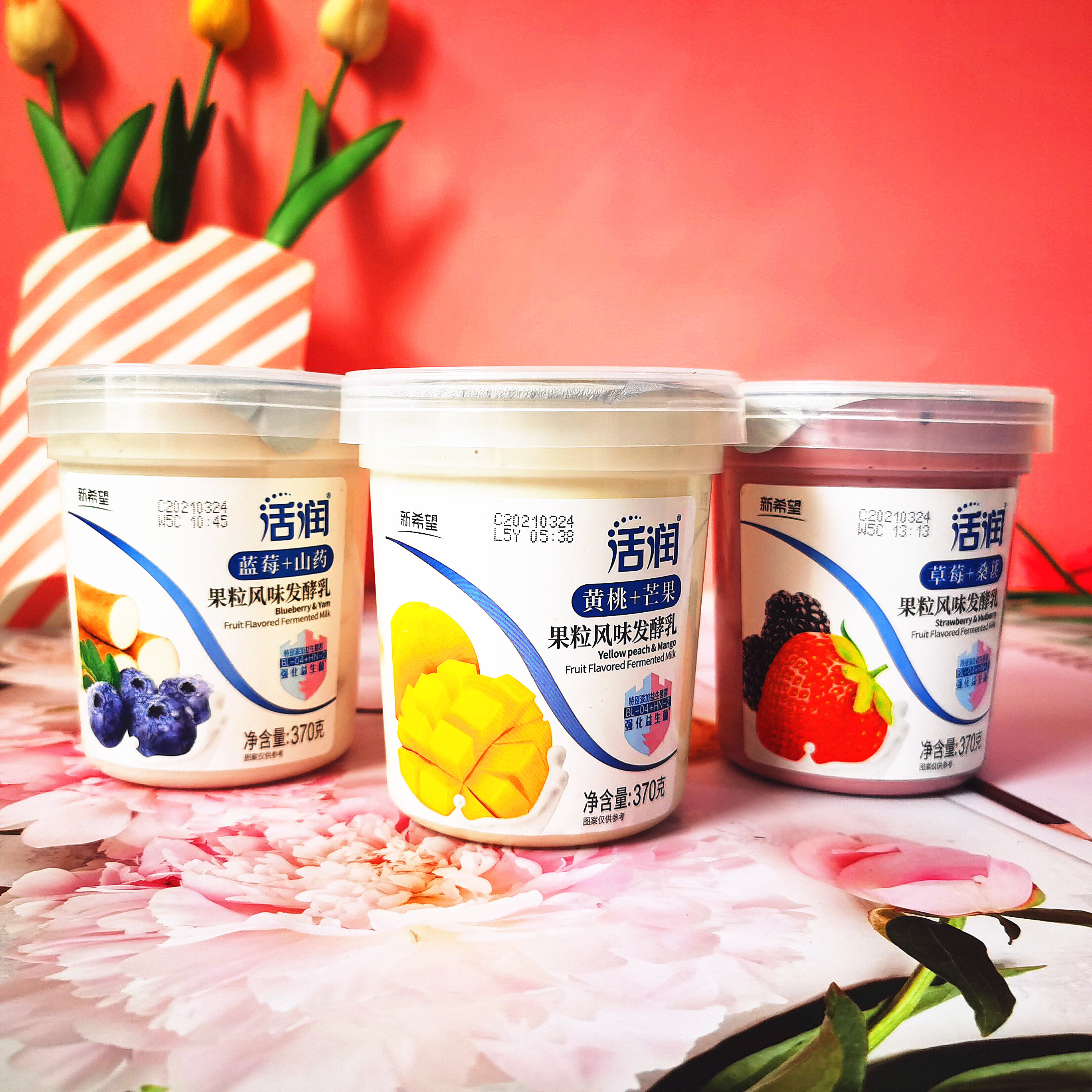 New hope live big fruit yogurt 370g6 cups fruit flavored yogurt strawberry mulberry yellow peach mango