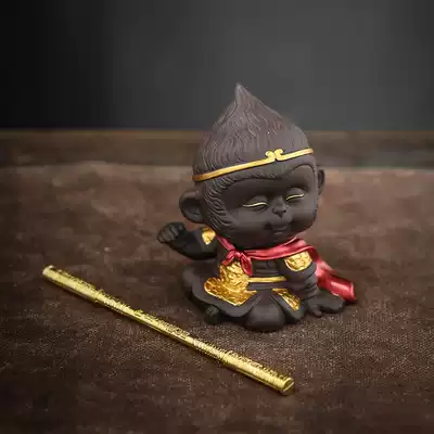 Qi Heavenly sage Sun Wukong with golden cudgel cute tea pet decoration boutique monkey can raise purple sand teahouse tea play