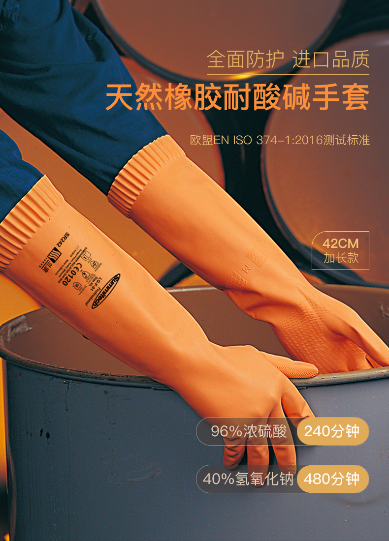 Extended natural rubber industrial chemical resistant gloves Acid and alkali resistant corrosion resistant nitric acid concentrated sulfuric acid disinfectant cleaner