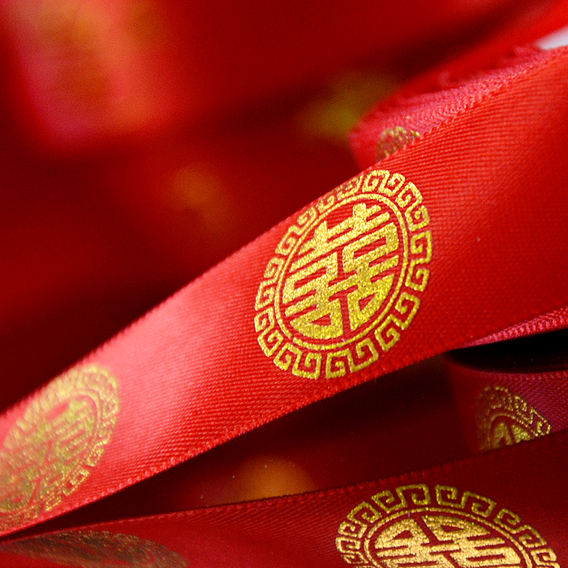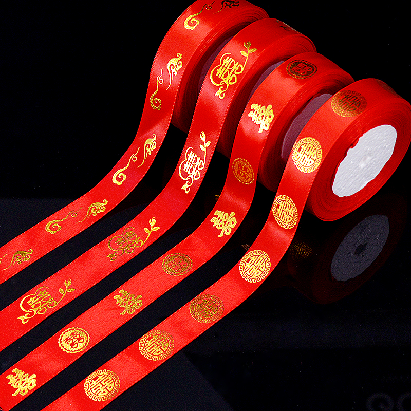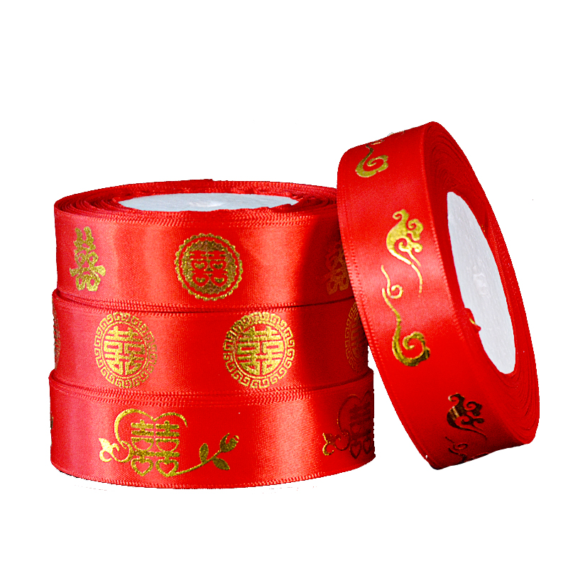 Wedding happy words red satin ribbon with quilt bundle Wedding Celebration Items Packaging Gift Wedding Color Ribbon