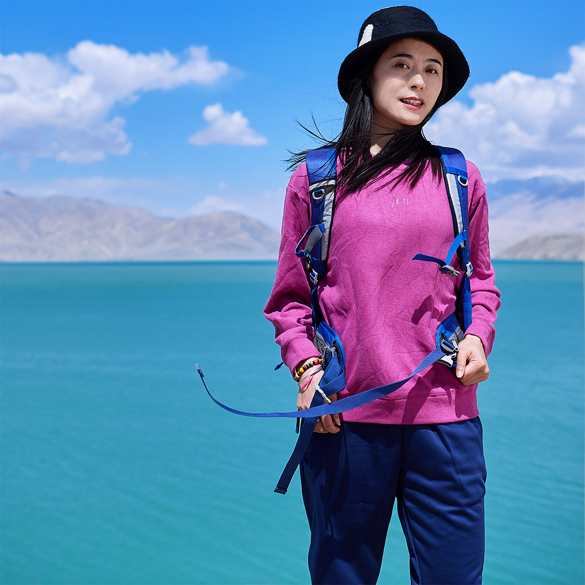 Beijing Forest Outdoor Autumn and Winter Xinjiang Cotton Heat Velvet Knitted Turtleneck Backing Fleece Thick Cotton T Mountaineering Suit Long Sleeve Female