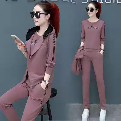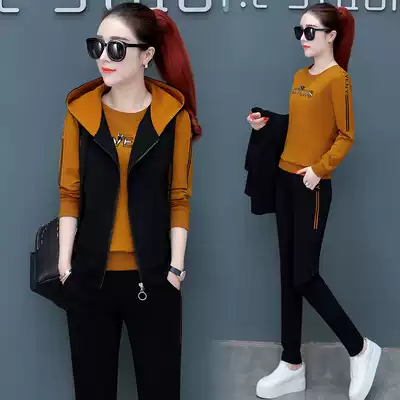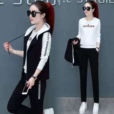 Sports suit women's spring and autumn 2020 new outside-mounted vest sweater three-piece fashion large size long-sleeved running casual clothes