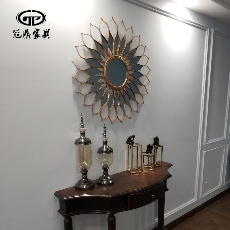 Crown Tripod Sun Decoration Mirror Custom Dining Hall Wall Wall-mounted Creative Mirror Light Extravagant Living Room Background Wall Genguan Mirror
