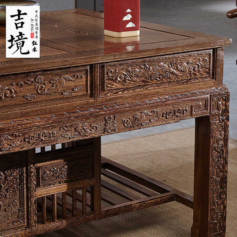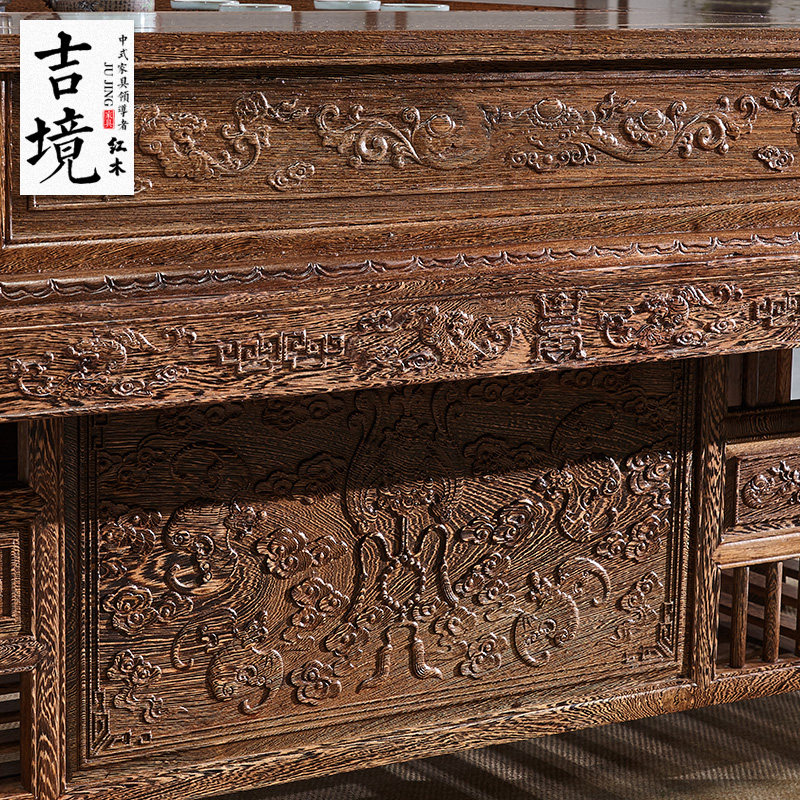 Chicken wing wood tea table and chair combination mahogany furniture office large tea table Kung Fu tea art tea table 2 meters tea table Chinese style