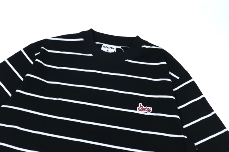 SOULSTYLE original black and white striped hip hop hip hop skateboard Rap hiphop small neckline loose long sleeve T-shirt