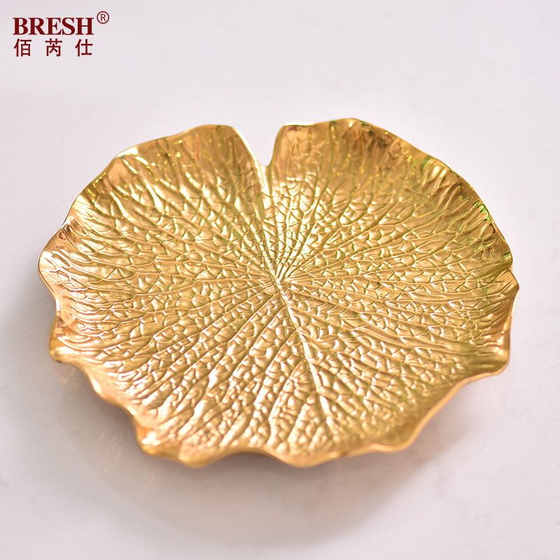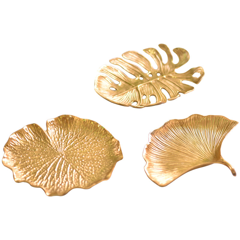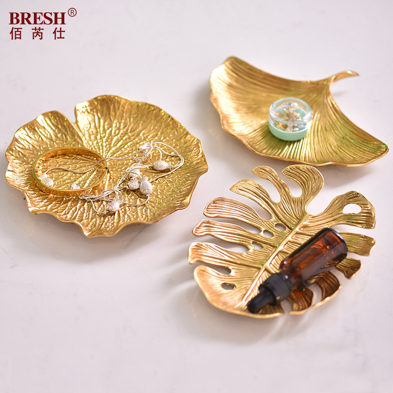 Light luxury creative cosmetic tableware jewelry collection piece copper desktop fruit disk set up Ginkgo leaf reception disc
