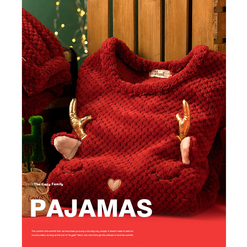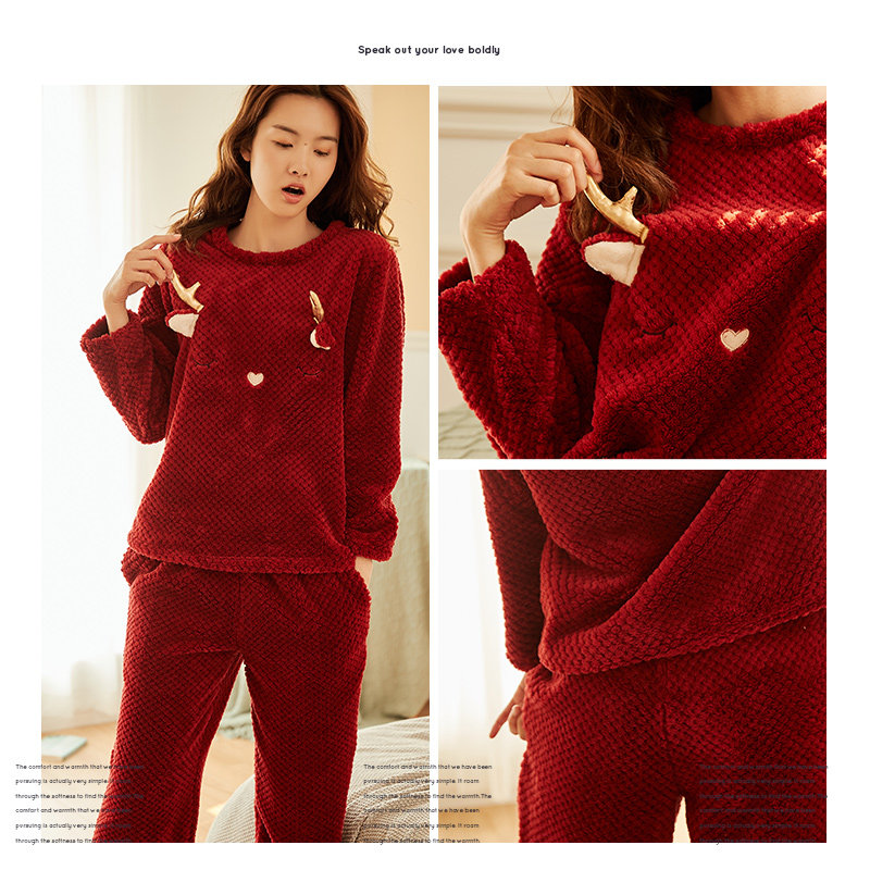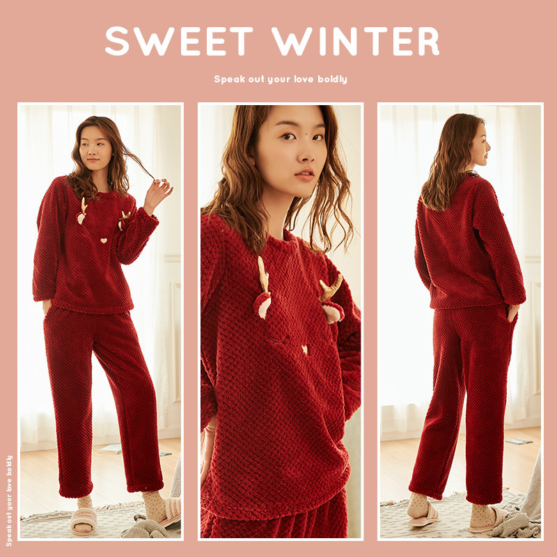 Top Melon Melon Pajamas Woman Autumn Winter Fever Sweatpants Thicken Christmas Red flannel Flannel Home Suit External Wear