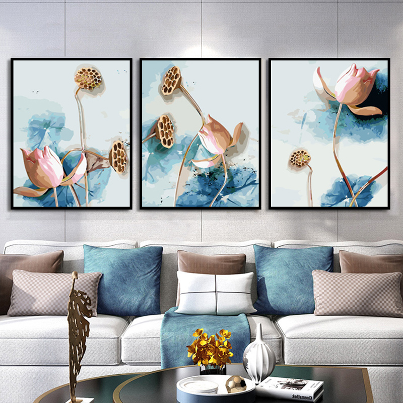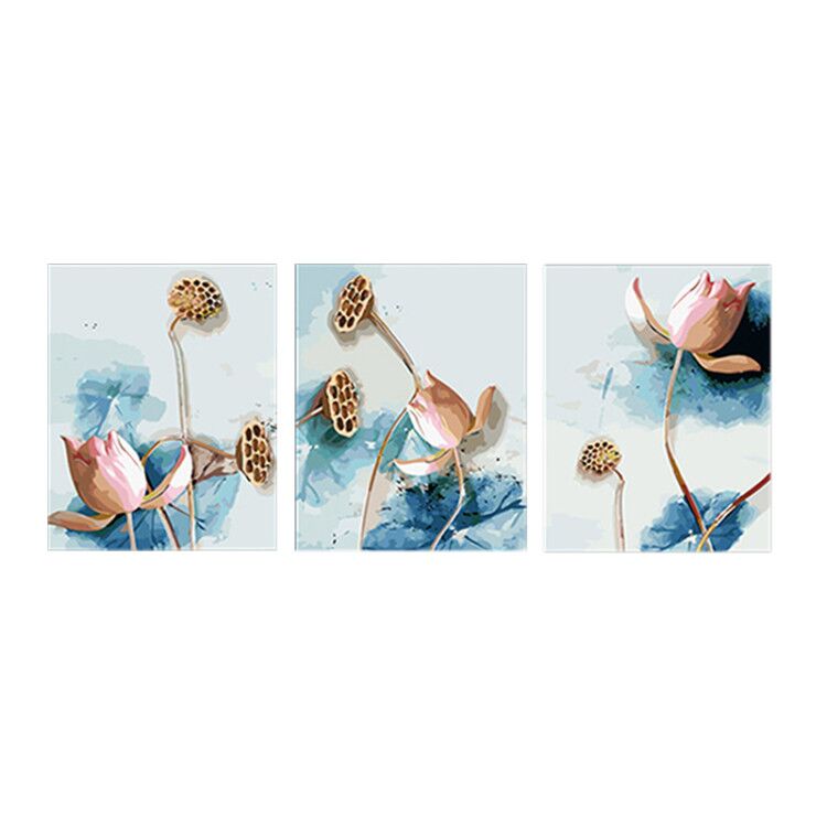 diy digital oil painting oil color painting triple-triple collage hand painted color living room scenery decoration large painting golden lotus flower