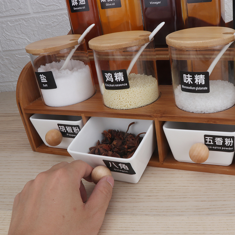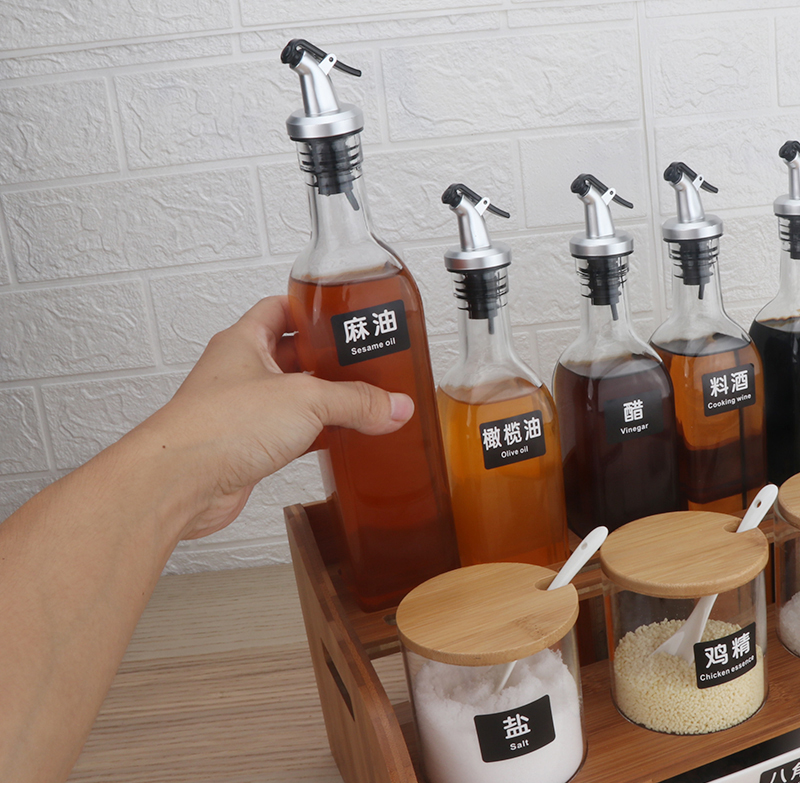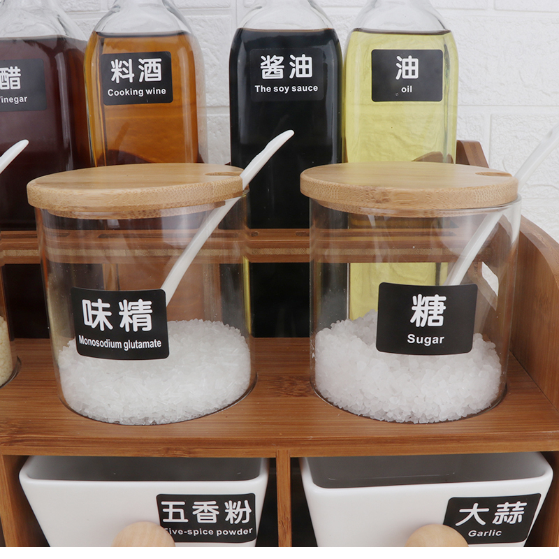 Olaf seasoning box set Household seasoning tank Seasoning tank rack Oil bottle pot Salt tank Glass kitchen supplies shelf