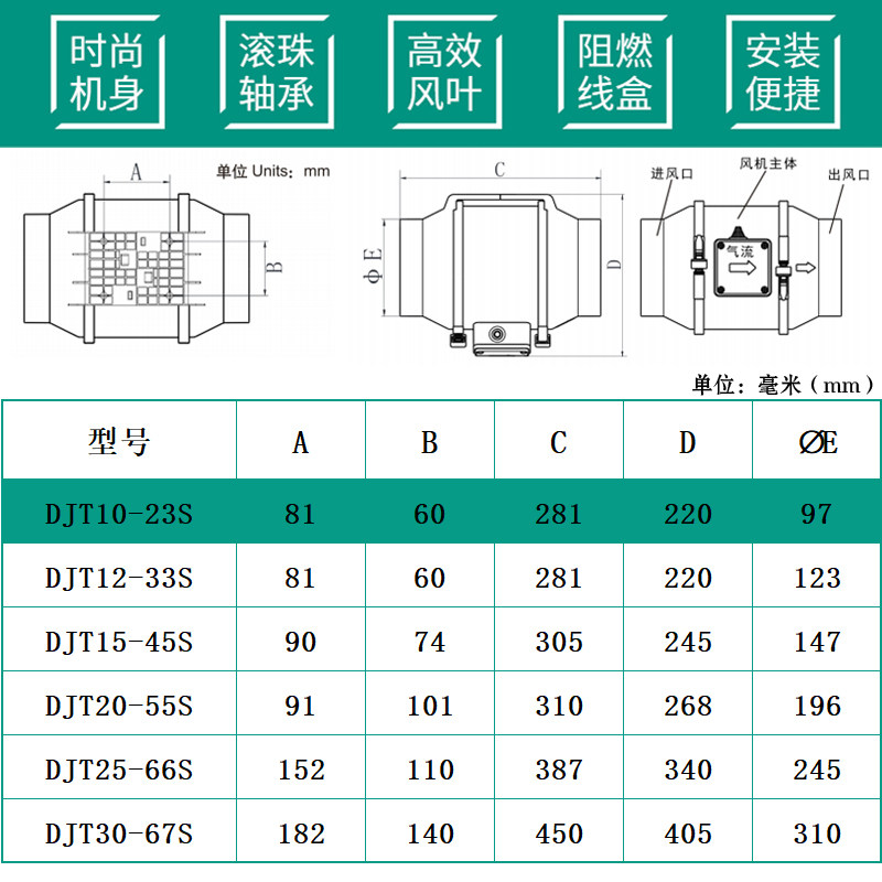 Green Island Wind duct ventilator Diagonal Flow Silent Big Suction One Drag Two Exhaust 4 5 6 8 inch Commercial strong exhaust fan