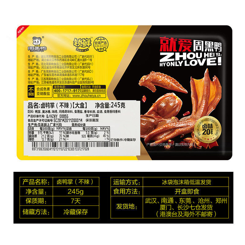 (Zhou Black duck flagship store _ lock fresh) Air-conditioned box of stewed duck feet (not spicy) 245g snacks specialty snacks