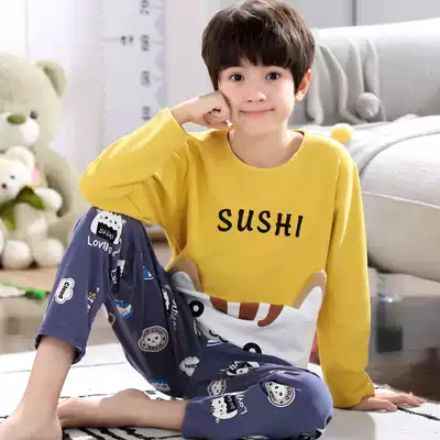 Cotton children's pajamas boys air-conditioned clothing thin spring and autumn long sleeve middle child boy home clothing set summer rabbit