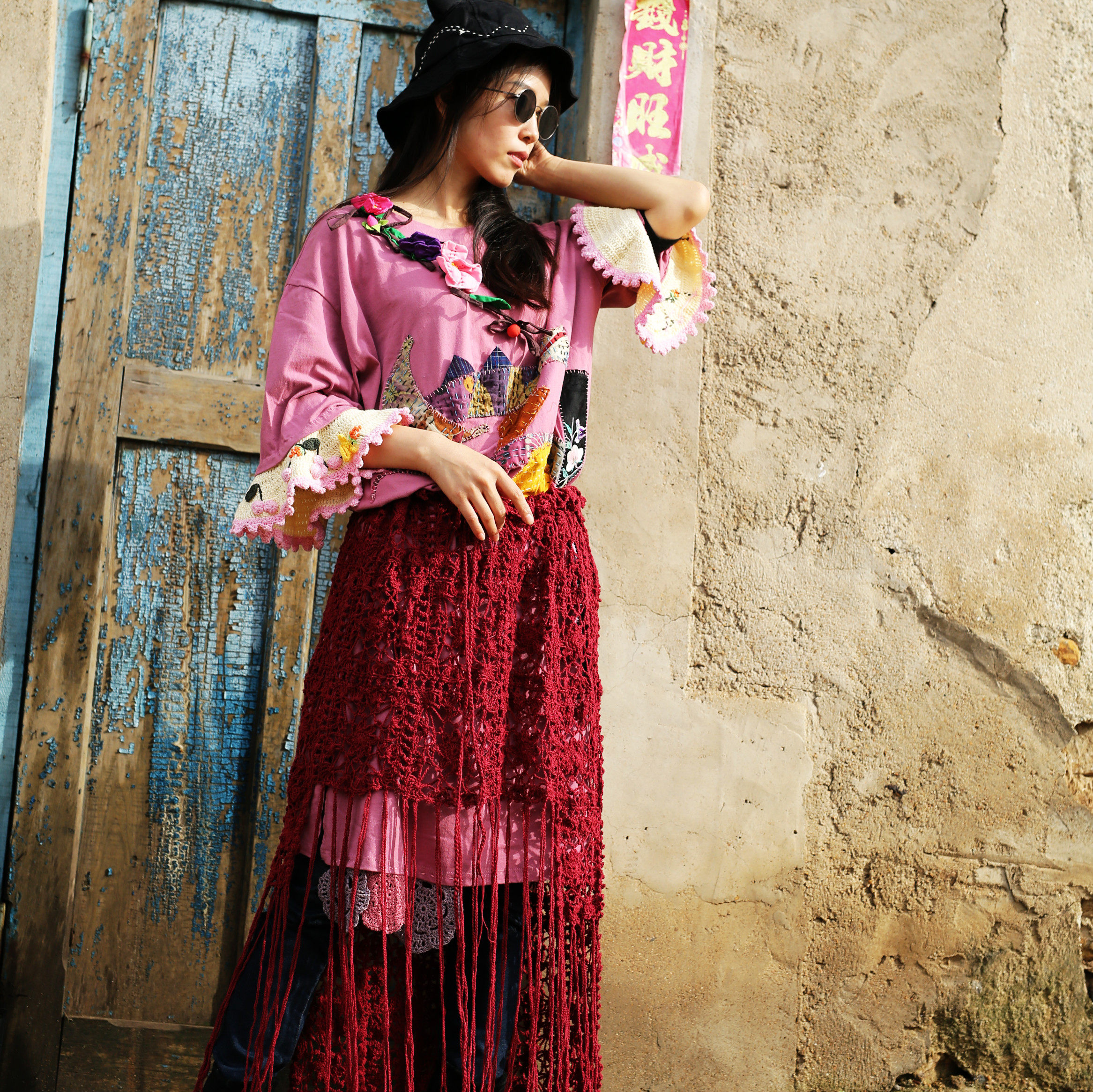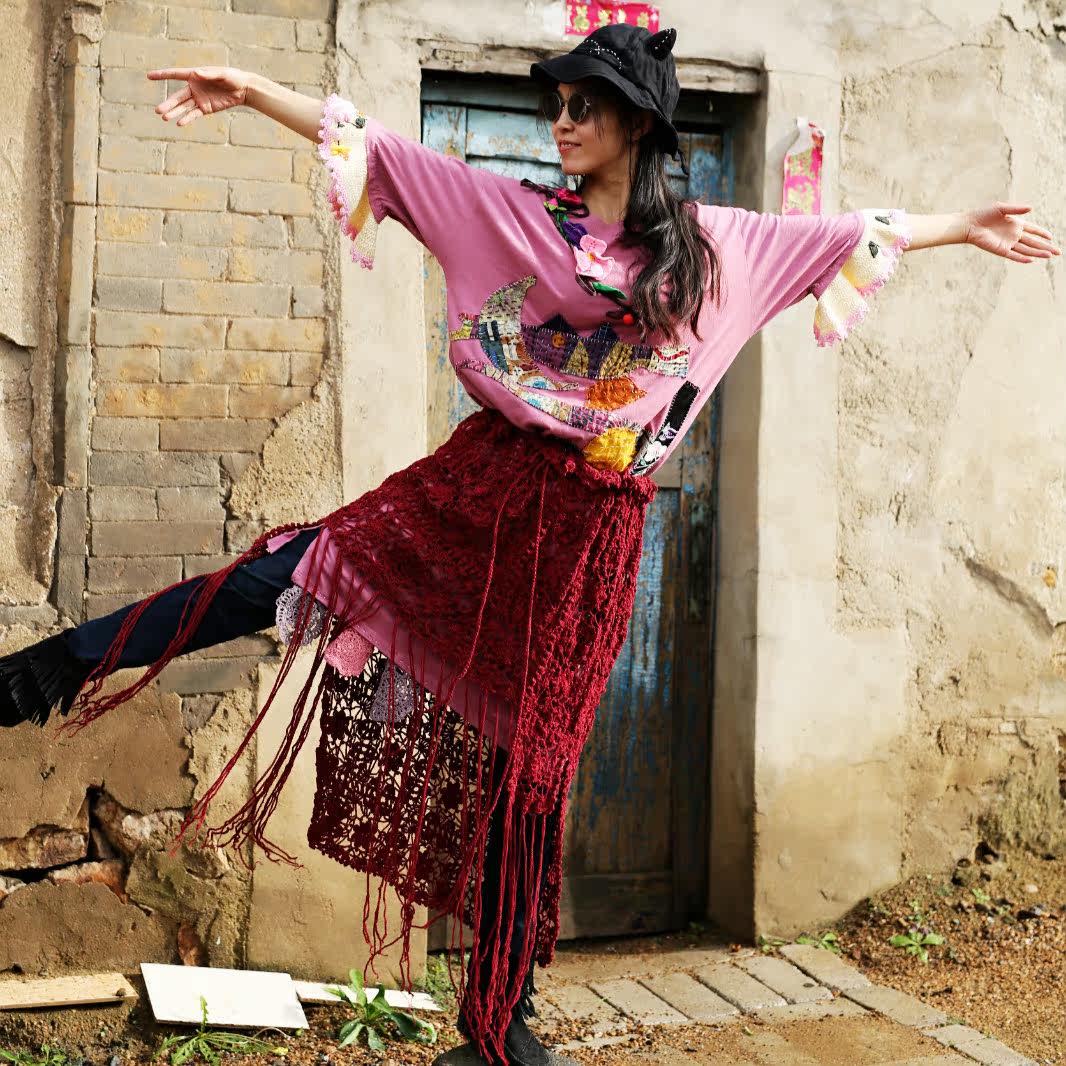 Luo Chen~ Mix and match design sense multi-purpose irregular handmade pure cotton crochet skirt shawl