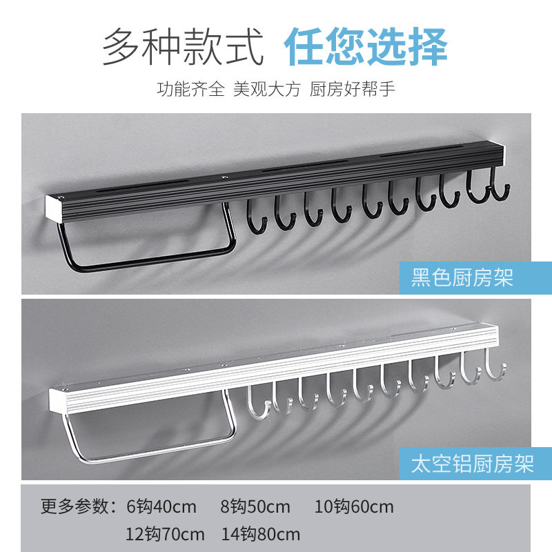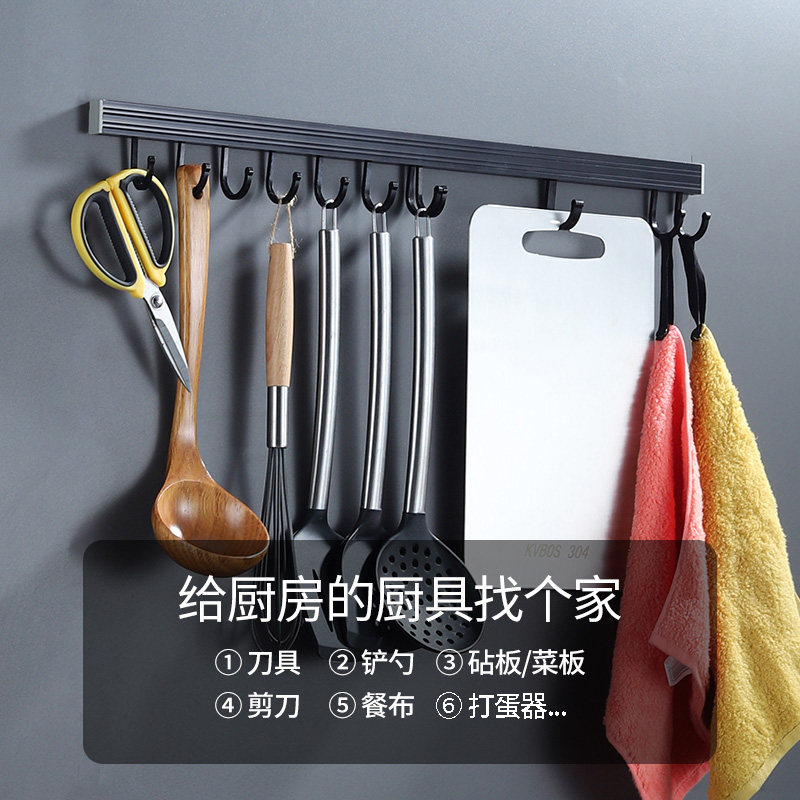 Kitchen hook free punch-free hanging rack hanging pole storage rack wall hanging pot spatula spoon multi-functional storage wall movable row hook