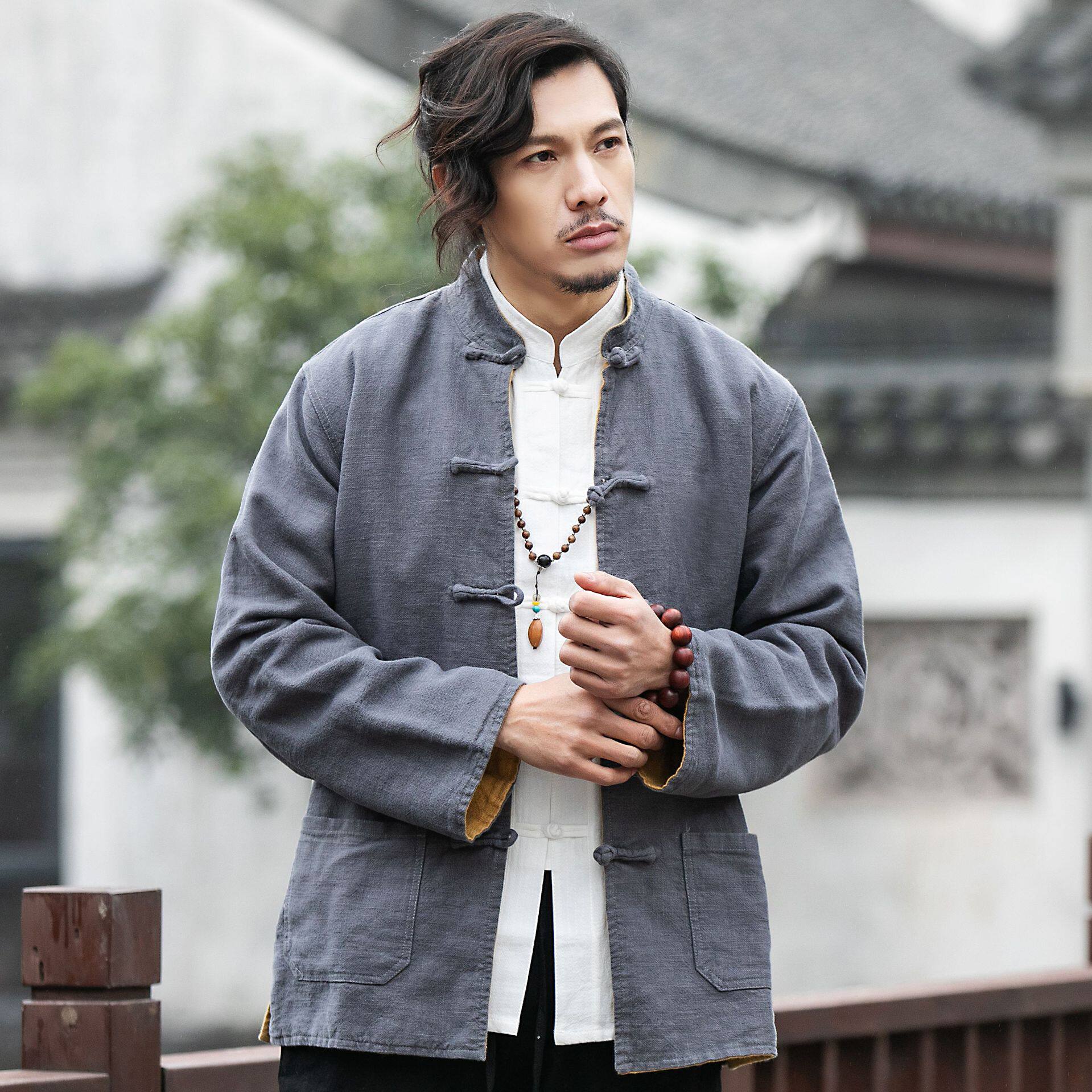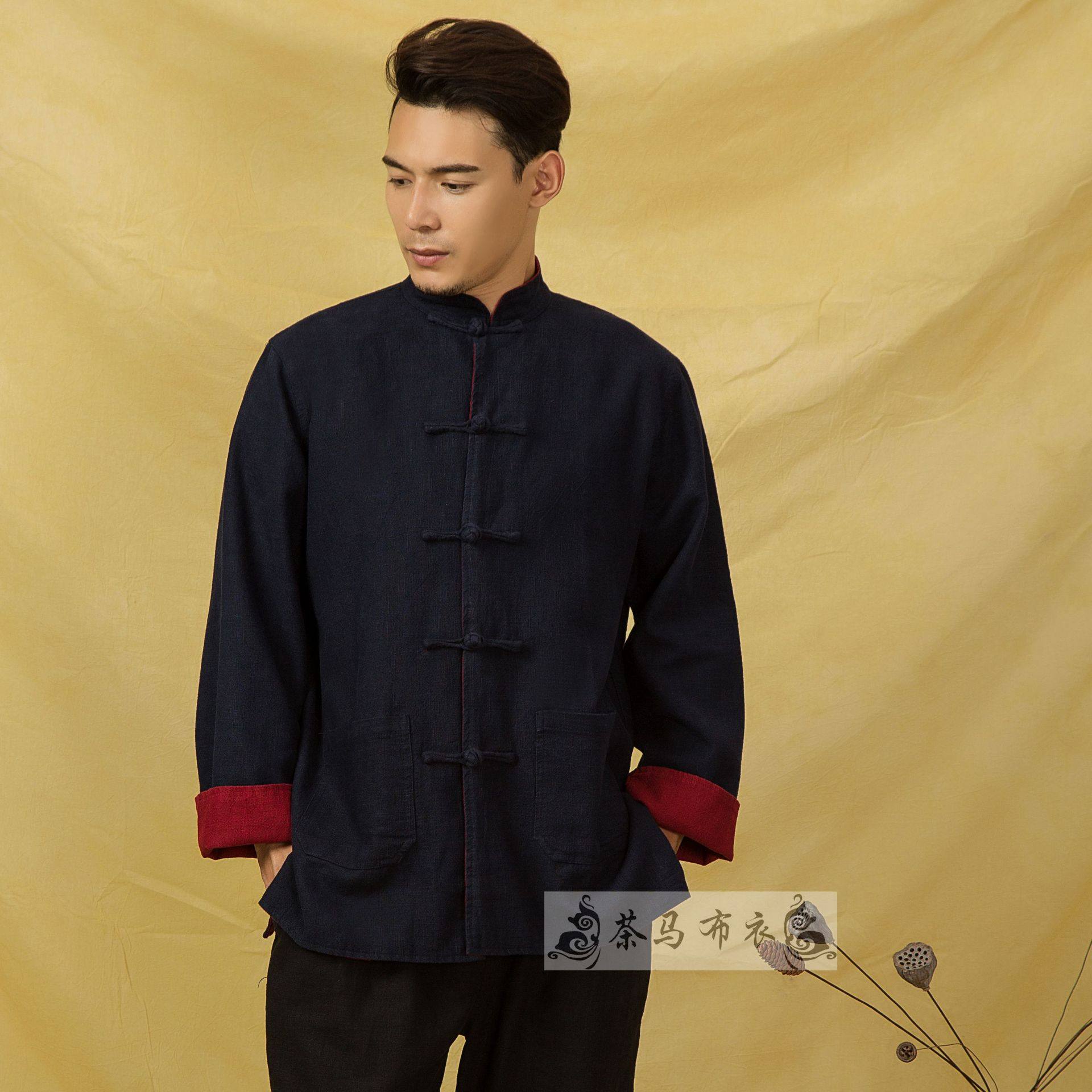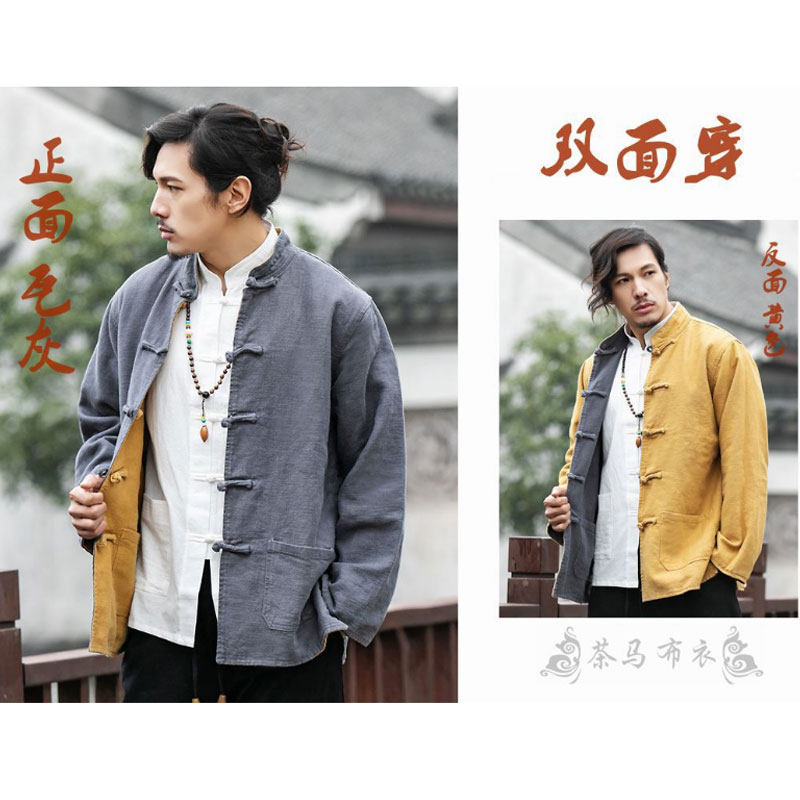 Autumn-winter bifacial bicolor two sides wearing Chinese style retro pure cotton disc buckle Down with jacket male Chinese style Zen to take a seat-Taobao