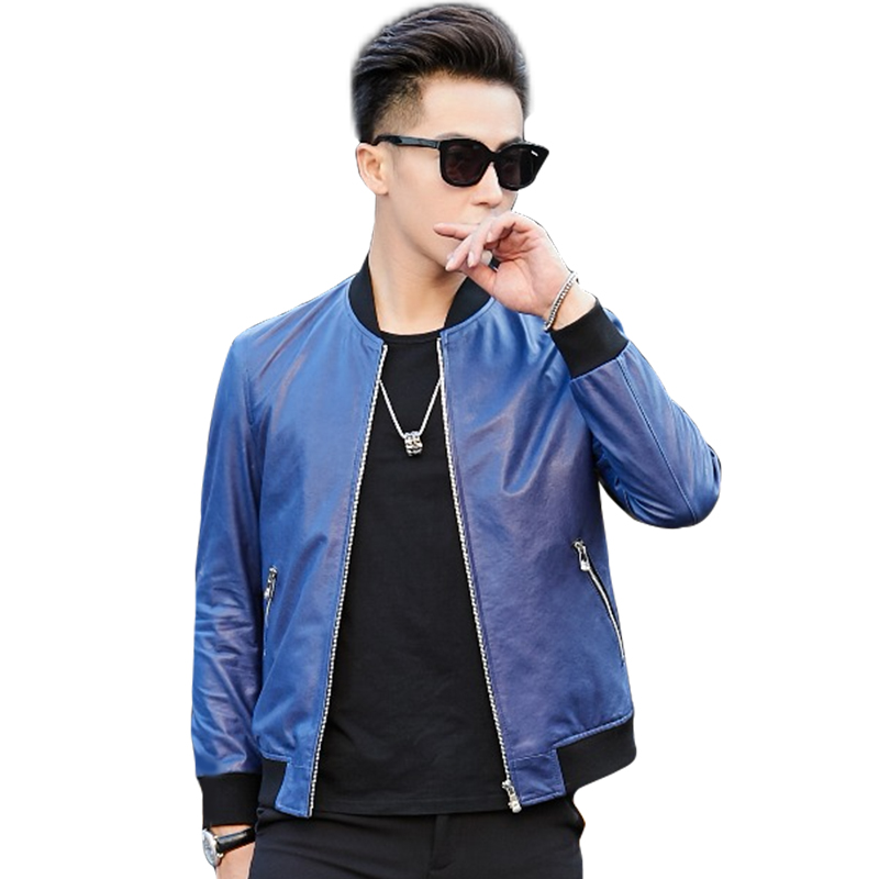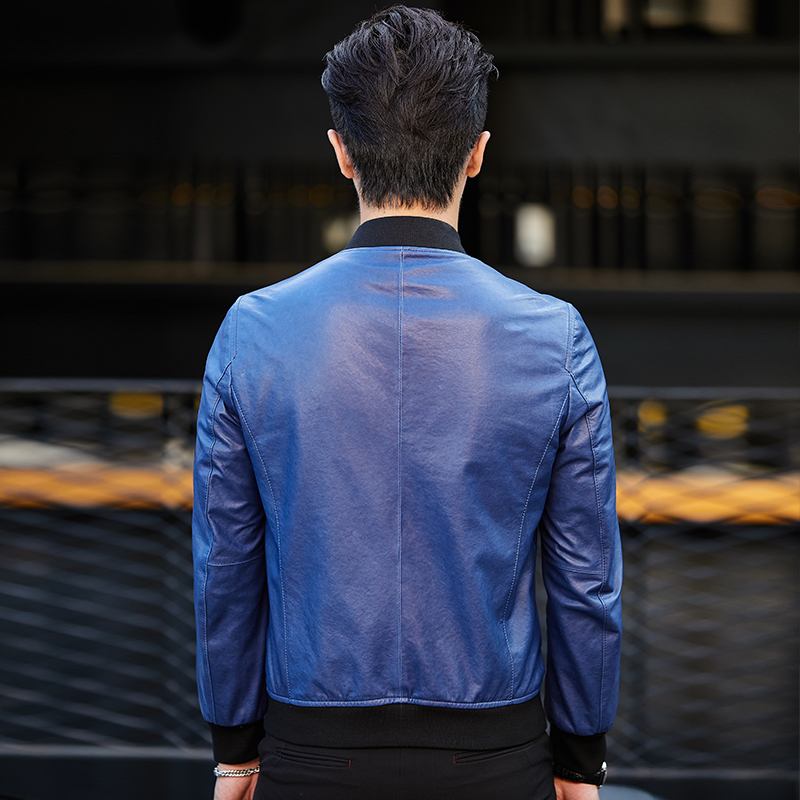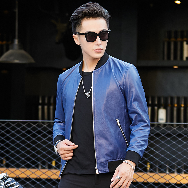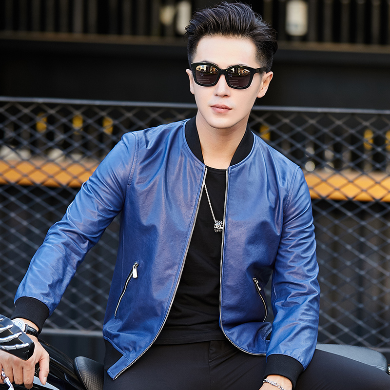 2021 Spring and Autumn New Haining Leather Men's Baseball Clothing Slim Sheepskin Jacket Men's Coat Youth Tide