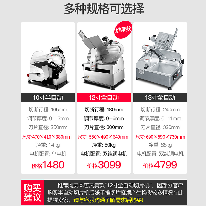 10 inch semi-automatic (manual meat delivery) 12 inch full automatic (automatic meat delivery) 13 inch full automatic(automatic meat delivery)