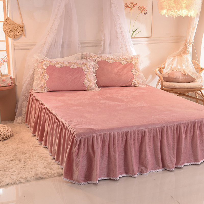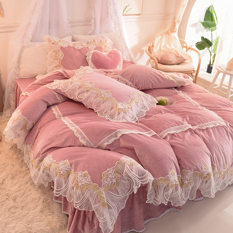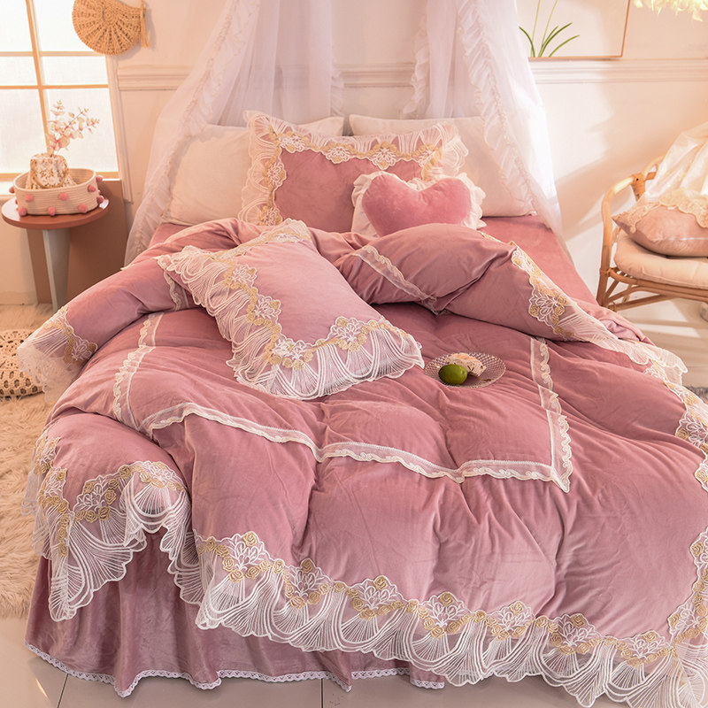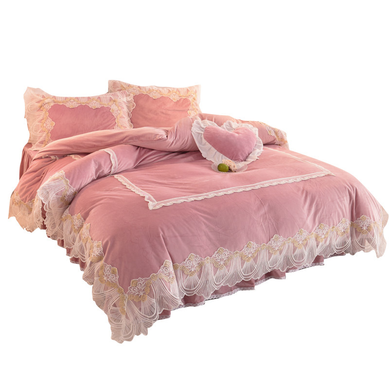 Winter coral velvet four-piece set double-sided velvet crystal velvet flannel lace edge plus velvet bed sheet quilt cover bedding
