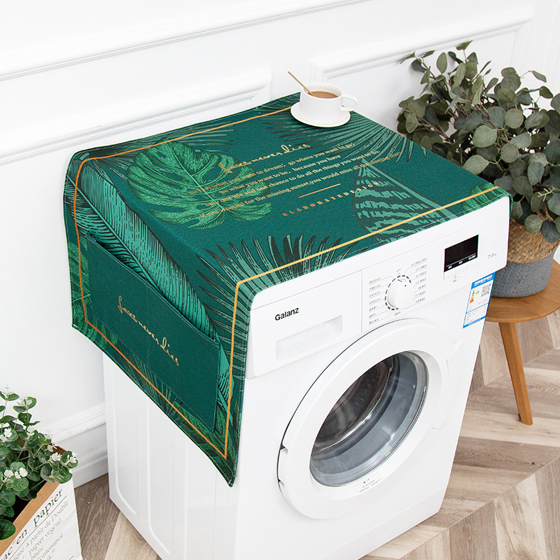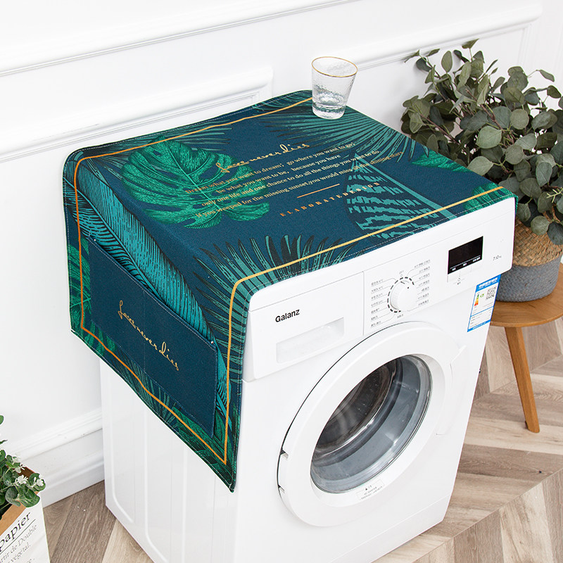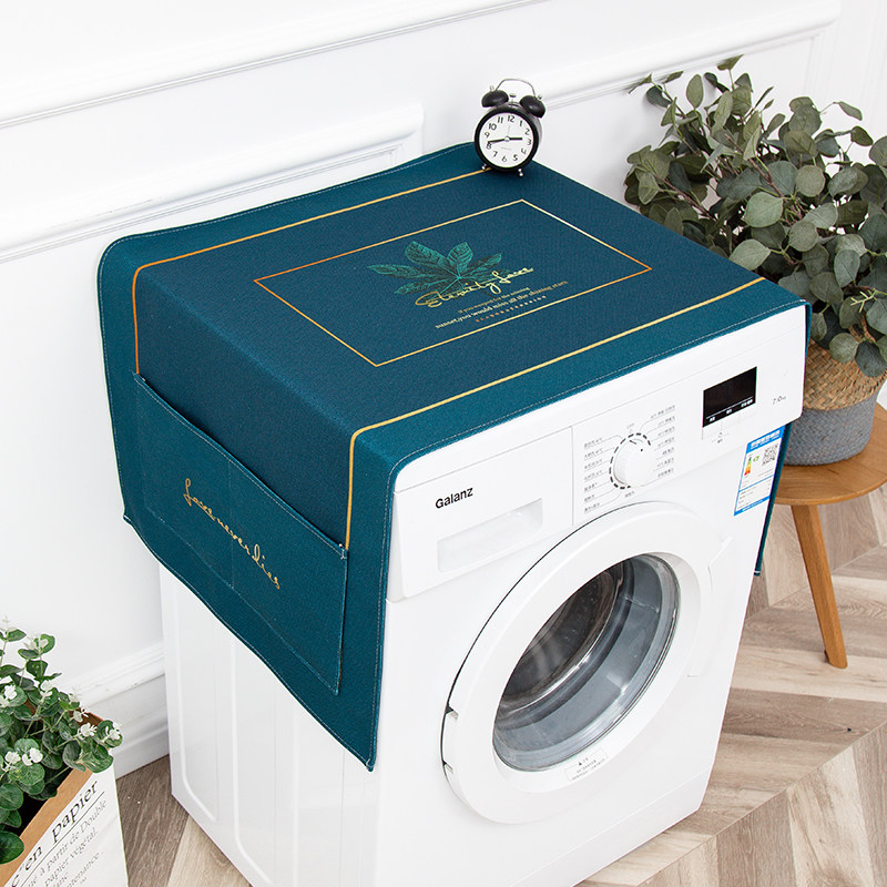Cotton and linen waterproof washing machine cover cloth double pocket sunscreen cover towel rectangular oil-proof microwave oven protective cover can be customized