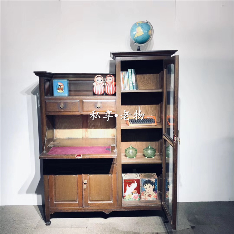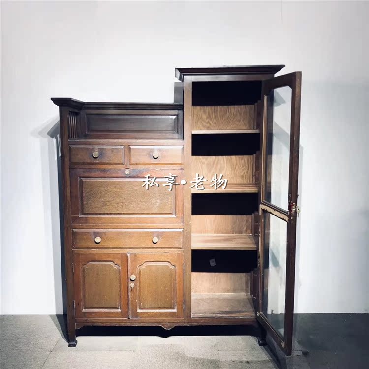 Old Shanghai Solid Wood Old Furniture Innate Old-style Bookcase Cabinet Glass Lockers Glass Lockers Glass Display Cabinet