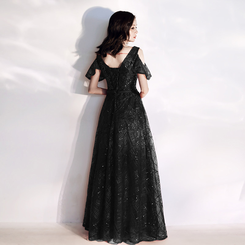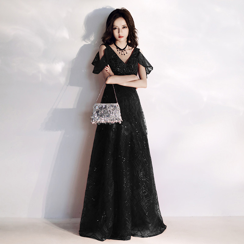 Black Evening Gown Woman 2022 new name Yuanyuan Noble Banquet Gas Field Queen Big Ruler to Thin The Arms Ocean Dress