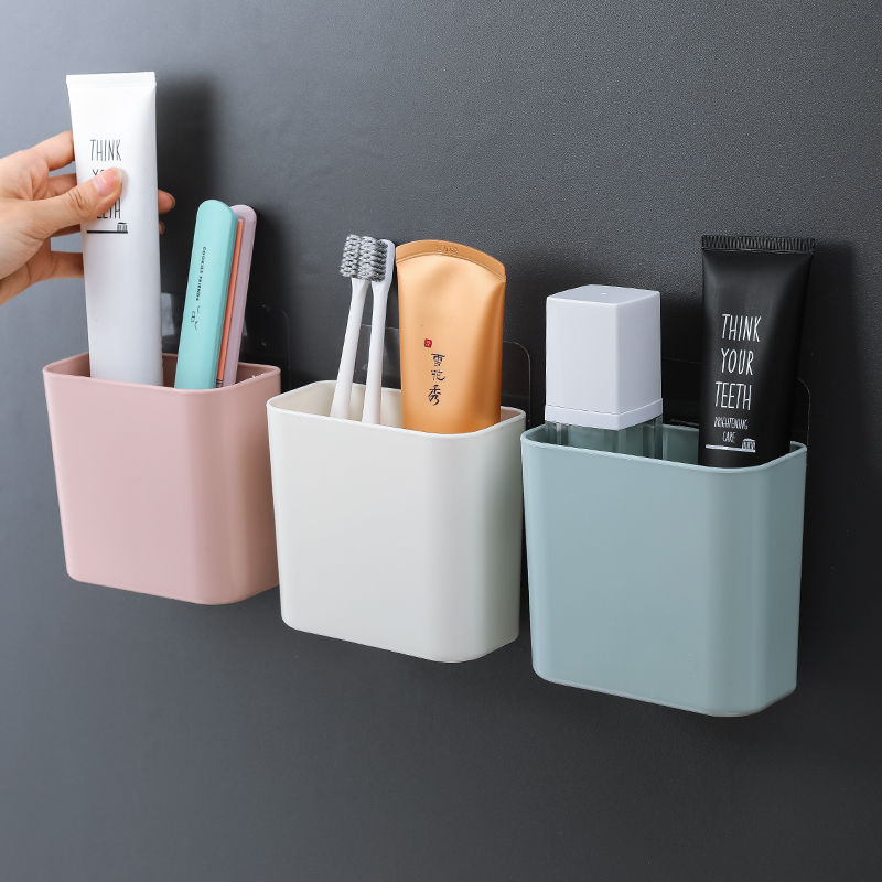 Bathroom toothbrush toothpaste storage rack Storage box wall-mounted free perforation Kitchen chopsticks tube remote control storage box