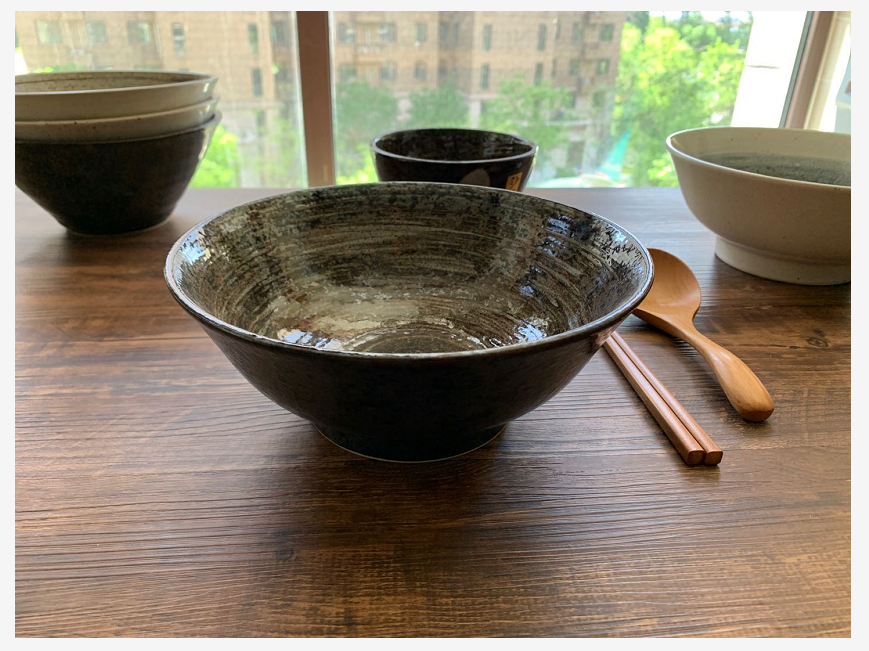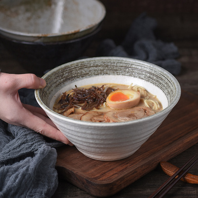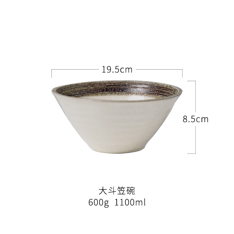 The thick pottery noodle bowl of the bamboo hat