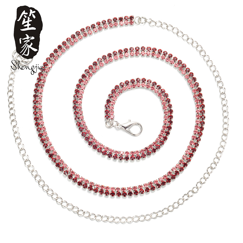 Shengjia belly dance 2020 new waist chain red and blue single and double row color diamond alloy dance decoration accessories rhinestone umbilical chain