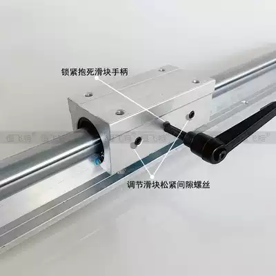 Adjustable cylindrical slider with lock, extended locking, positioning guide, slider, SBR opening aluminum support, extended slider 16 20