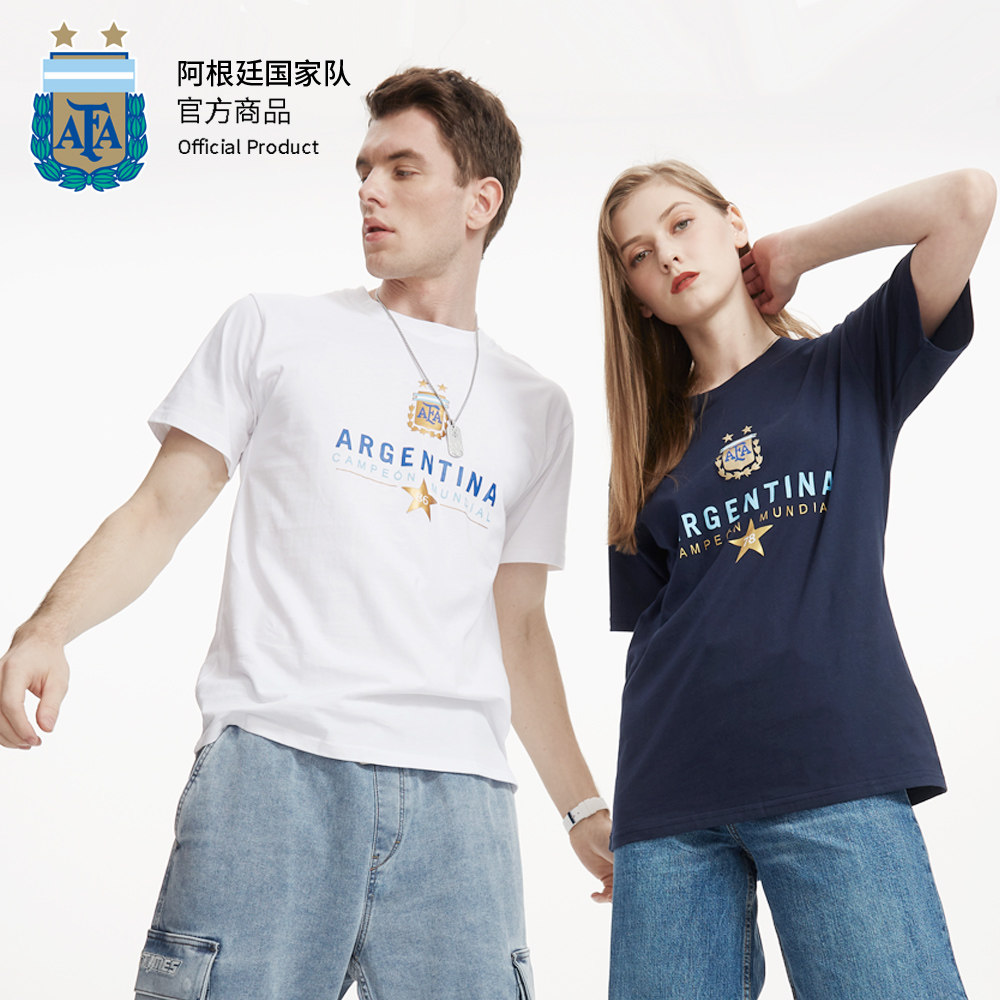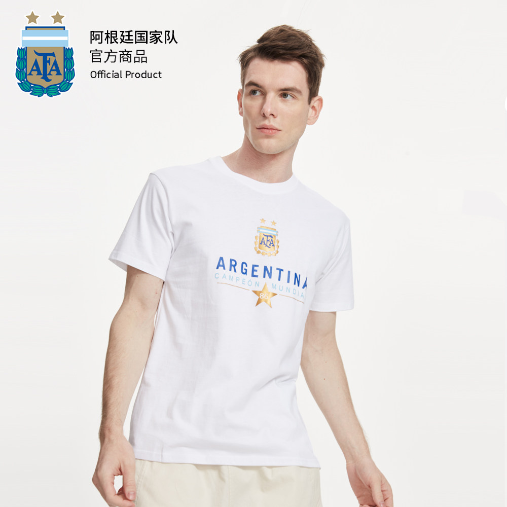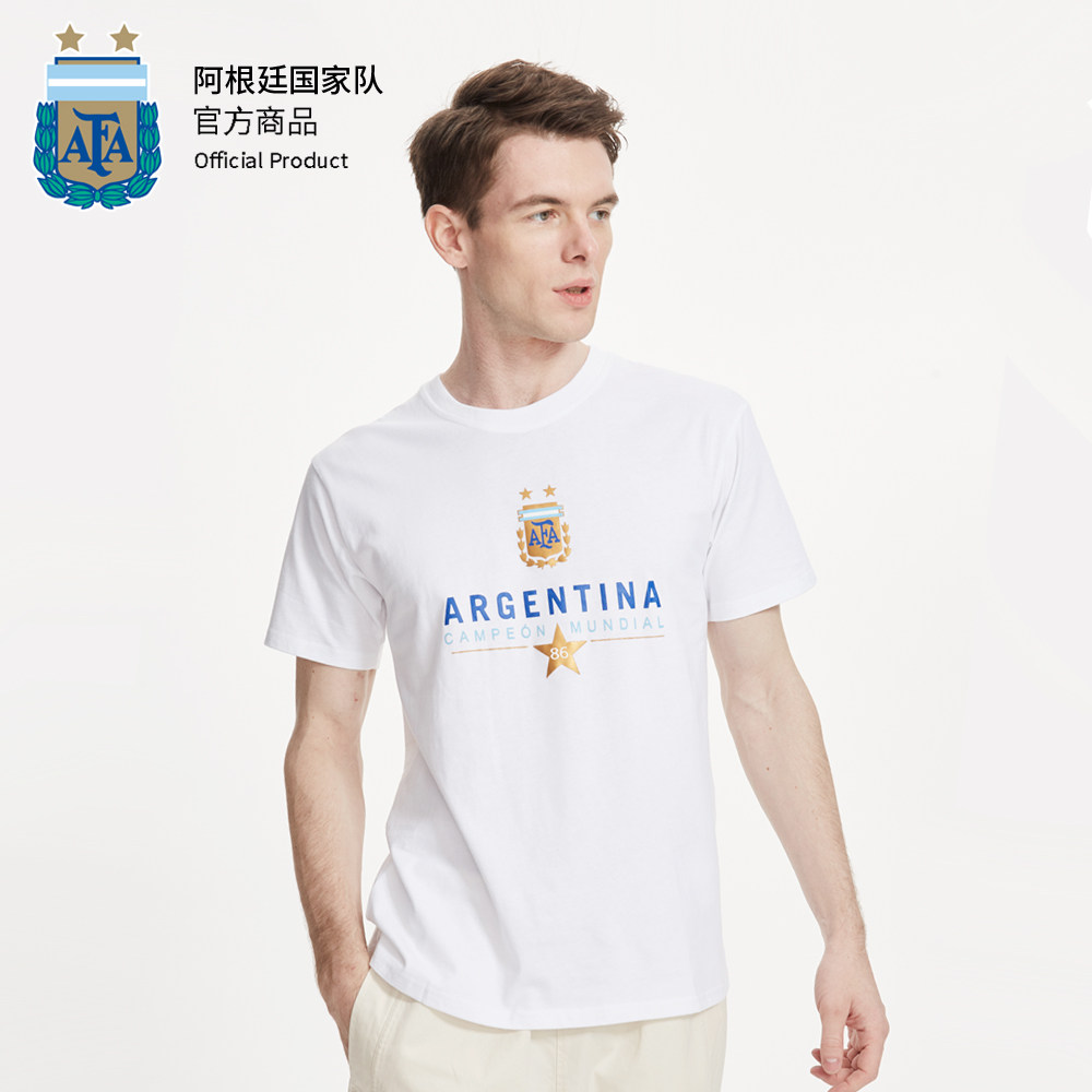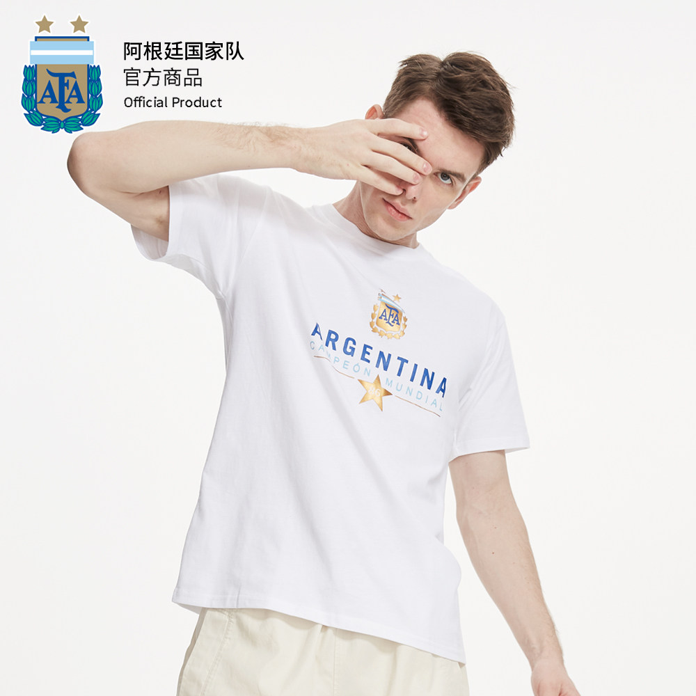 Argentina National Team Official Merchandise -- Team Emblem Classic pure cotton T-shirt round collar short sleeve Messi fan white