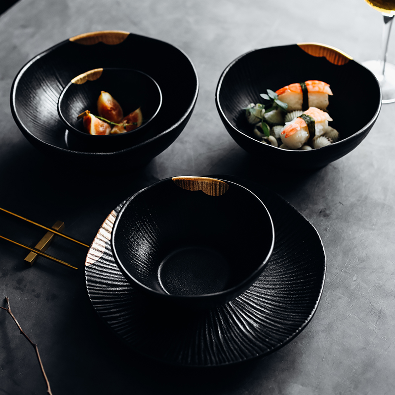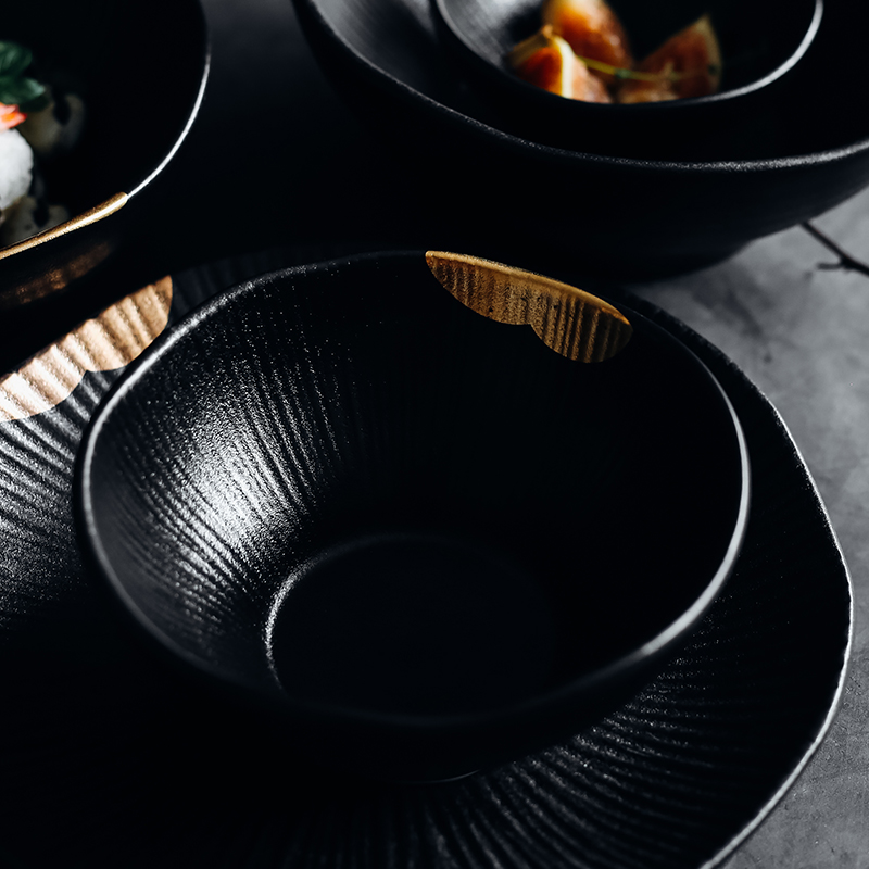 Retro ceramic high temperature resistant Ugold ink jade shallow mouth bowl inlaid with colorful gold anti-slip rice rice bowl retro creative Italian noodle soup bowl