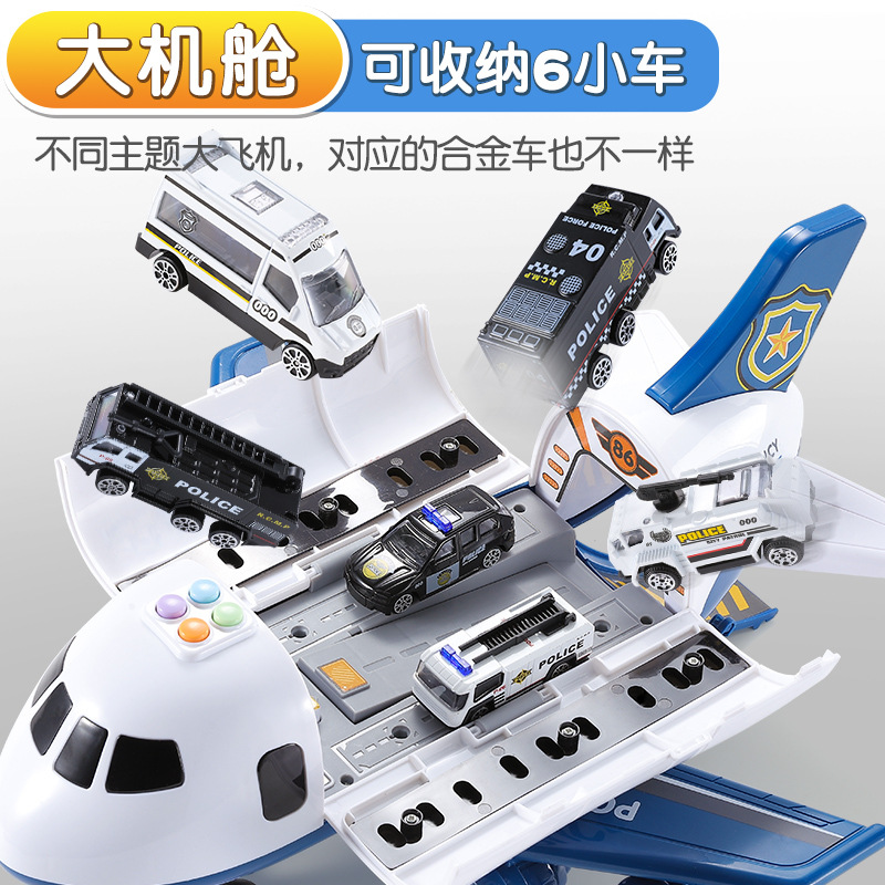 (Blue) Police big plane with 6 alloy car (yellow) Engineering big plane with 6 alloy car (red) Fire big plane with 6 alloy car (blue) Police plane with 6 car charger (yellow)
