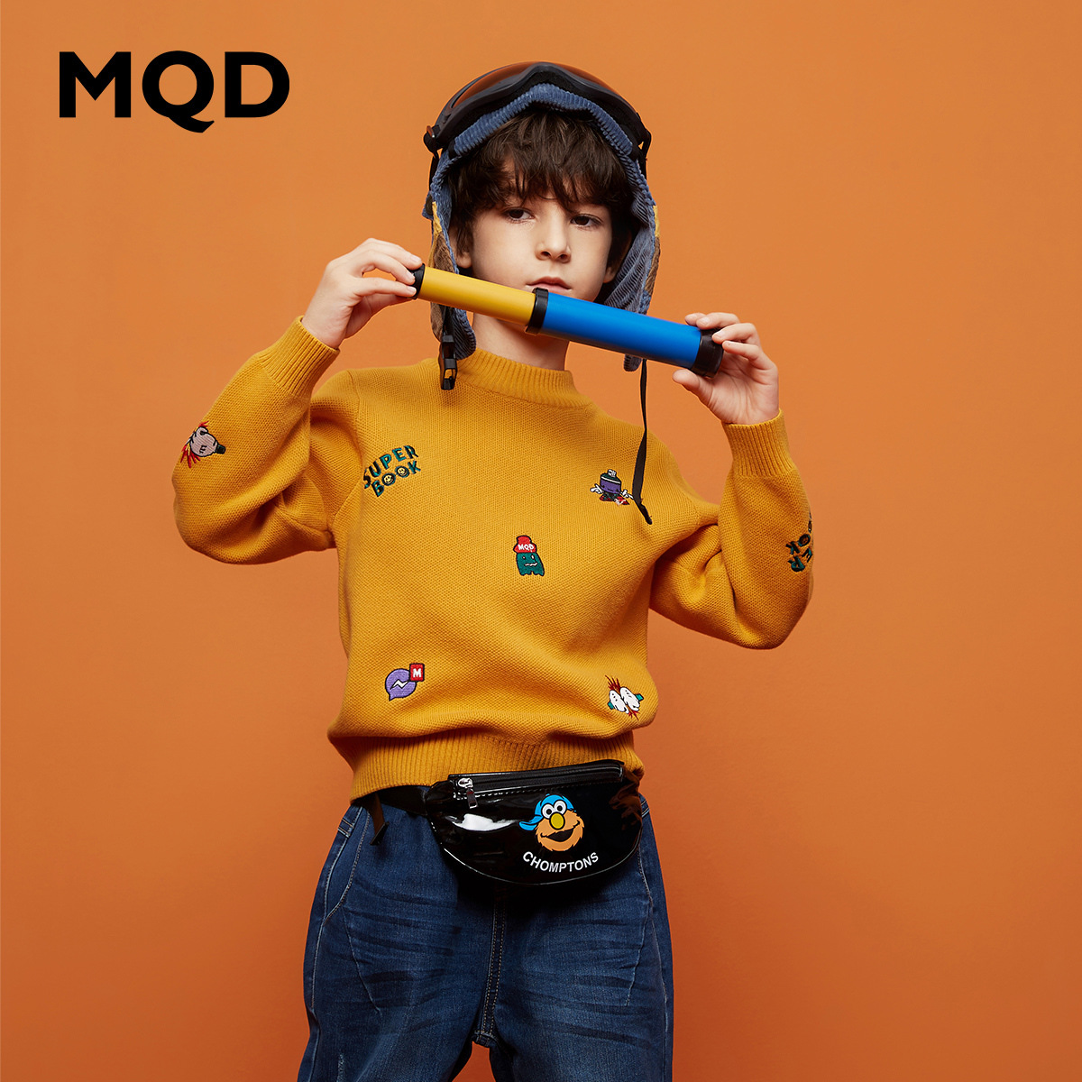 MQD Boy Clothing Boy Round Collar Thickened Sweater 2021 Winter Dress New Children CUHK Child Korean Version Hitch Knit Cardiovert
