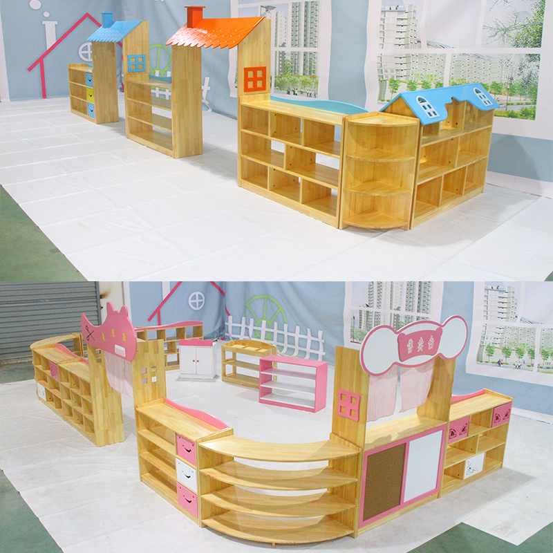 Kindergarten Solid Wood Area Corner Cabinet Children's Toy Combo Cabinet Innate Bookcase Cartoon Storage Corner Bag Cabinet